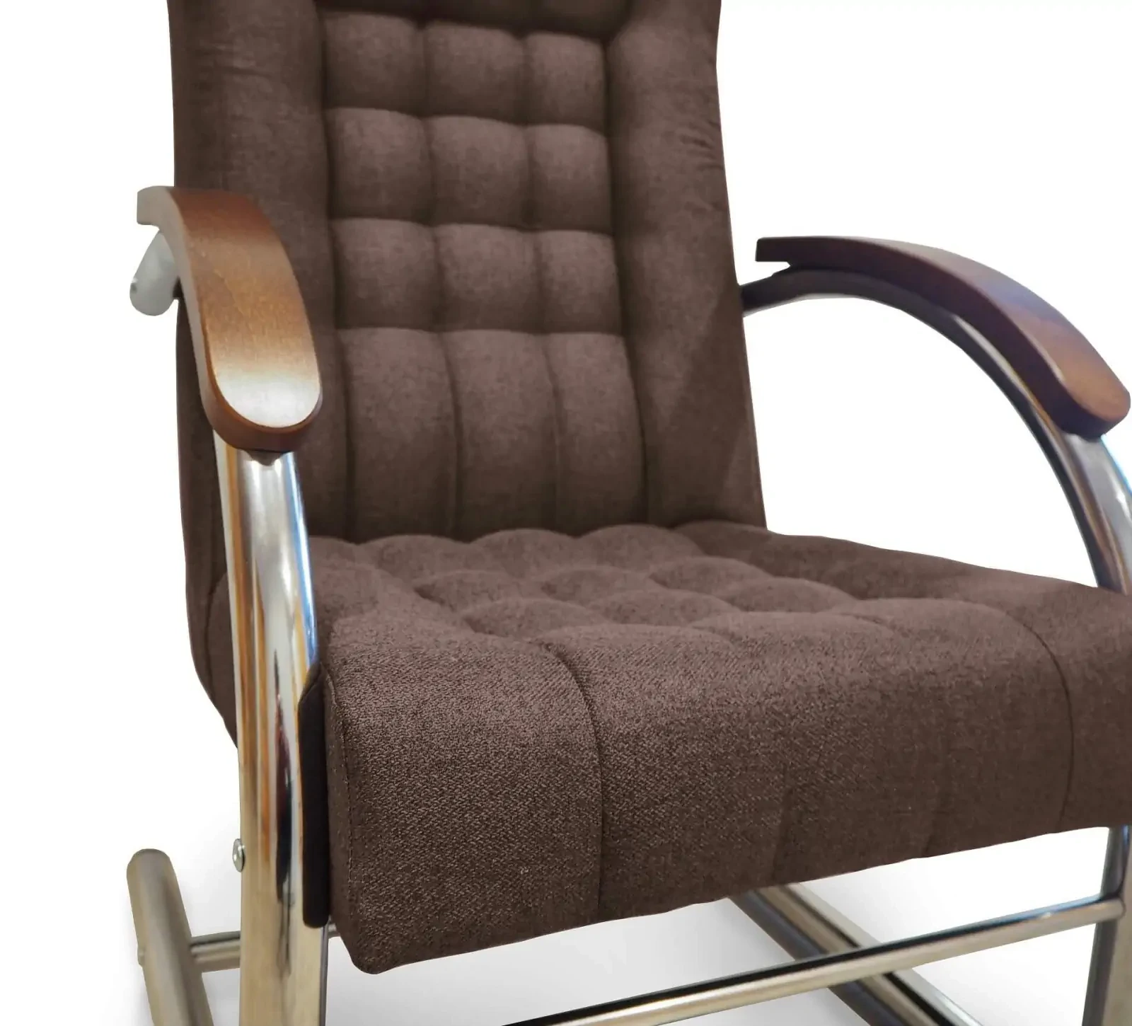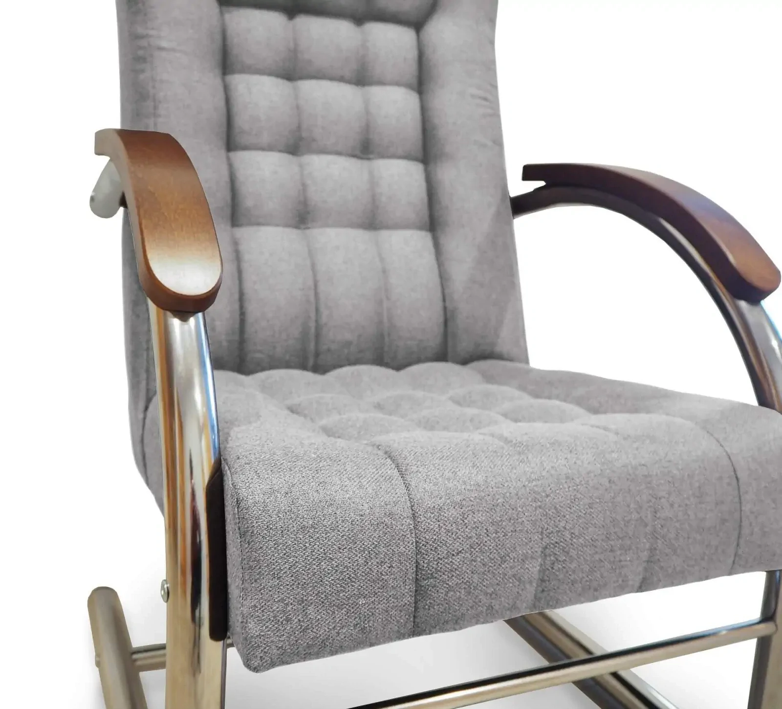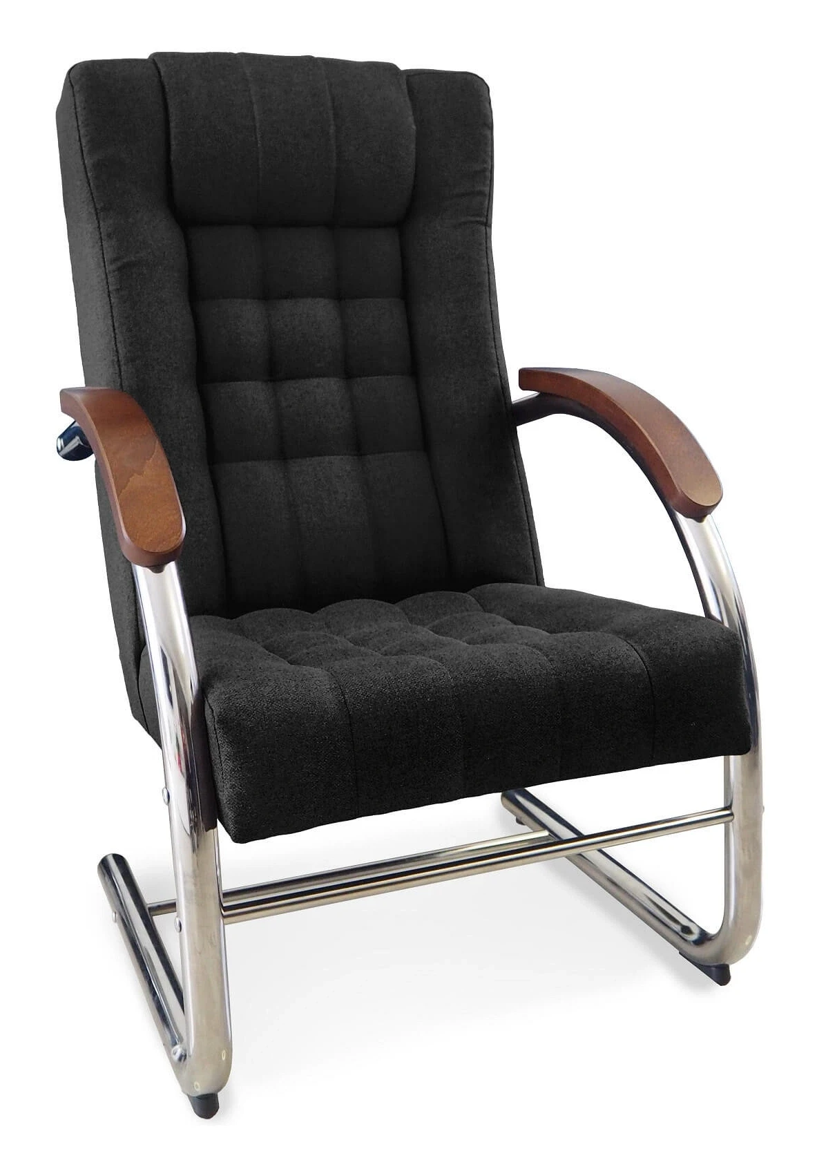 - Drewniane podłokietniki – drewniane wstawki elegancko kontrastujące z metalową konstrukcją