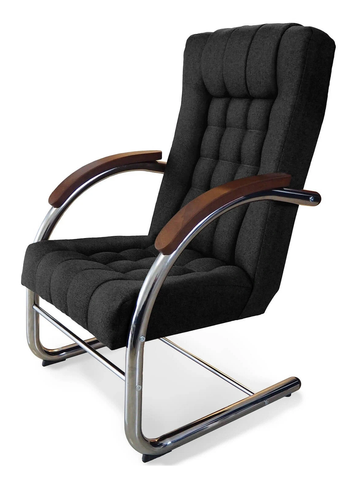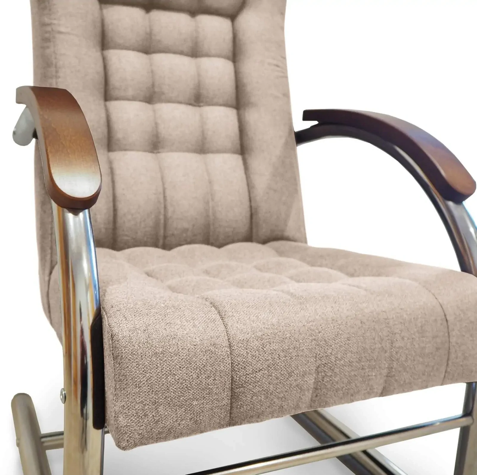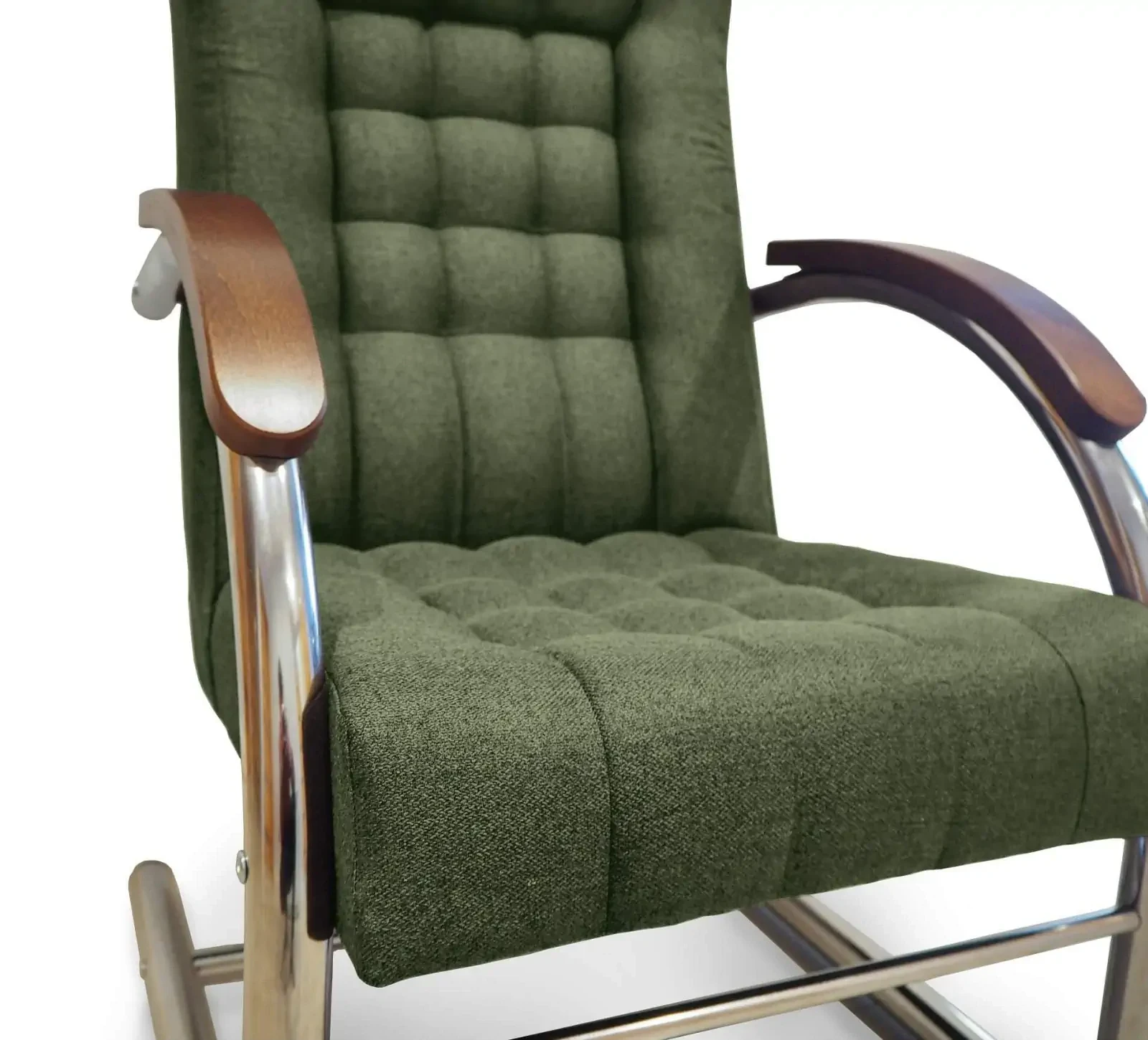 - Drewniane podłokietniki – drewniane wstawki elegancko kontrastujące z metalową konstrukcją