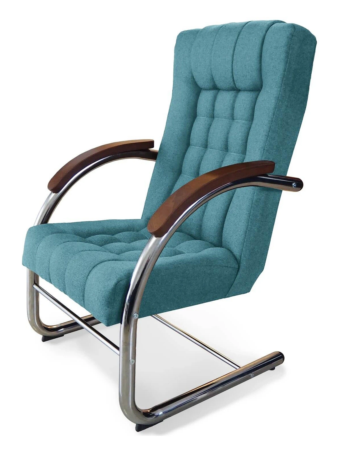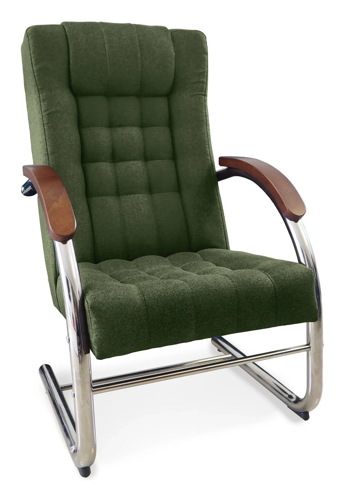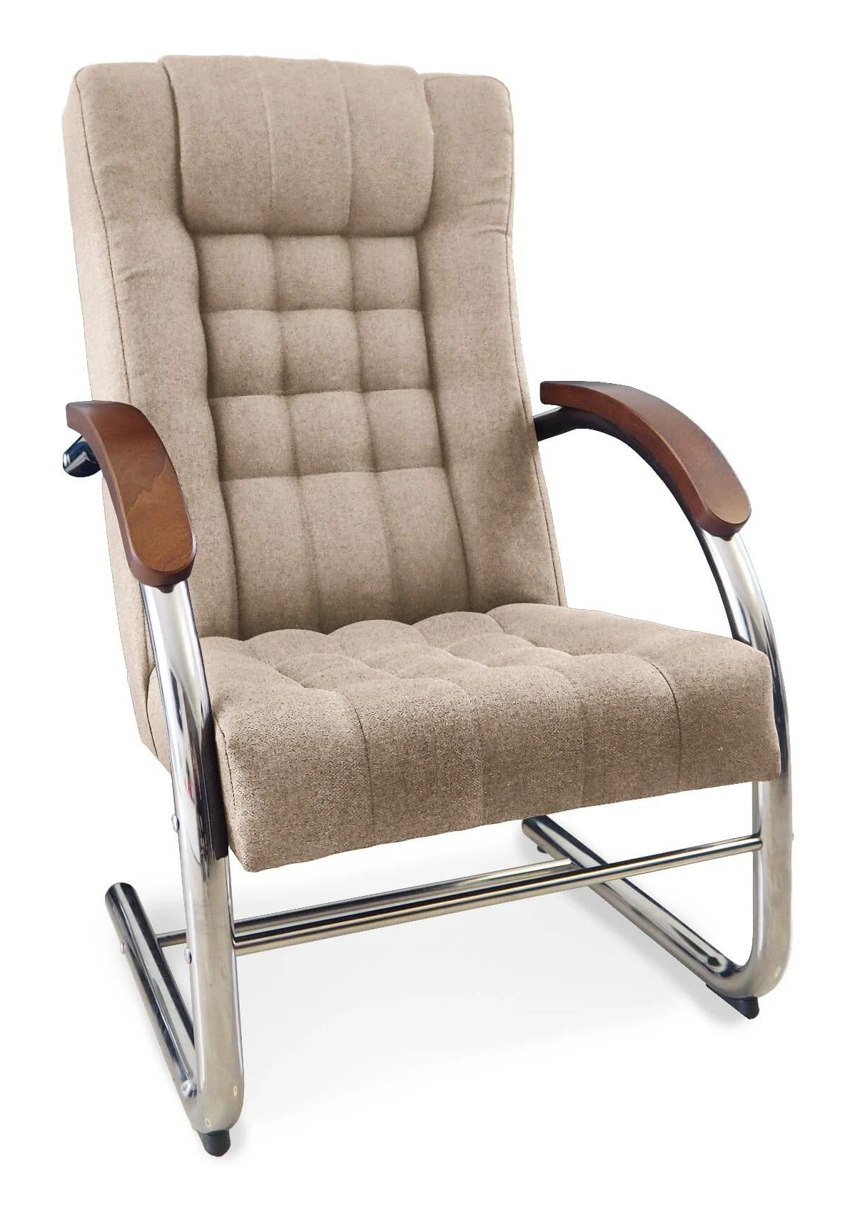 Fotel tapicerowany Finka Happy pikowany na metalowym stelażu do salonu