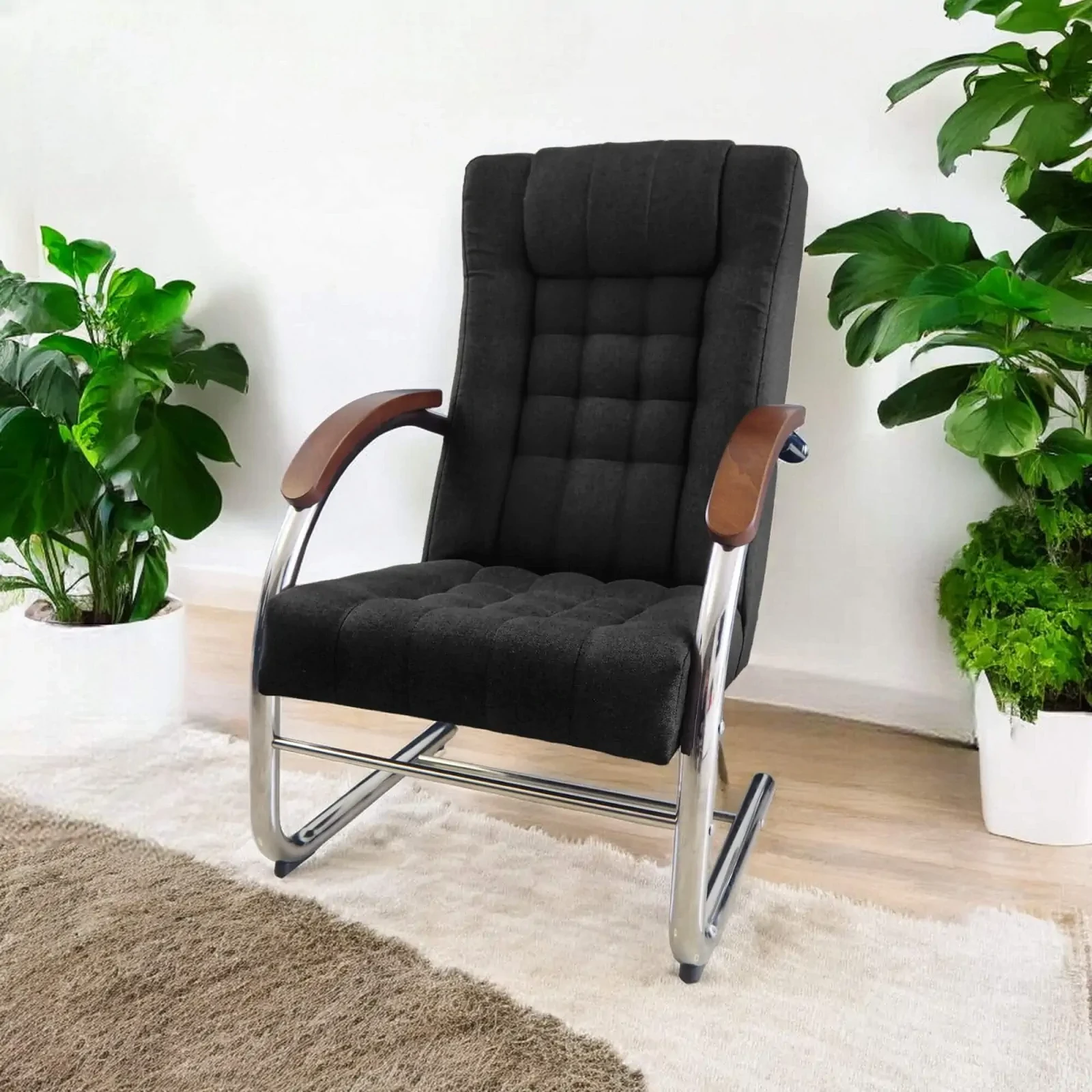 - Wytrzymała konstrukcja – Metalowy stelaż gwarantuje stabilność i długowieczność użytkowania, a fotel wytrzymuje obciążenie do 150 kg.