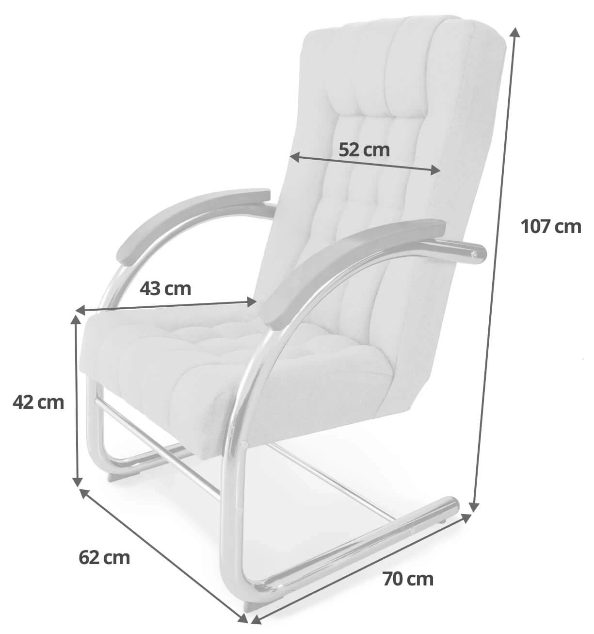 - Głębokość siedziska: 43 cm