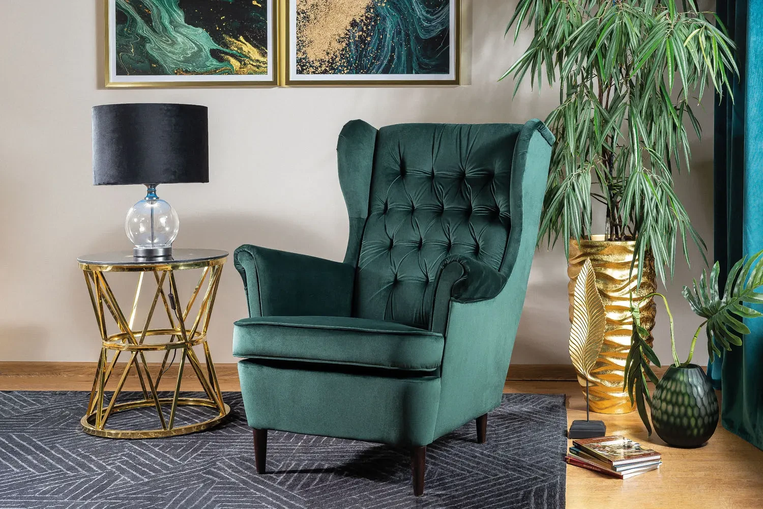 - Elegancki design - fotel pięknie wkomponuje się we wnętrza w stylu glamour