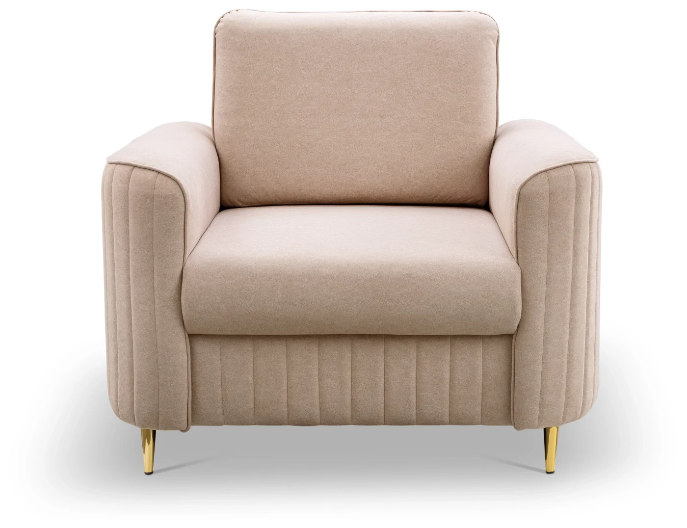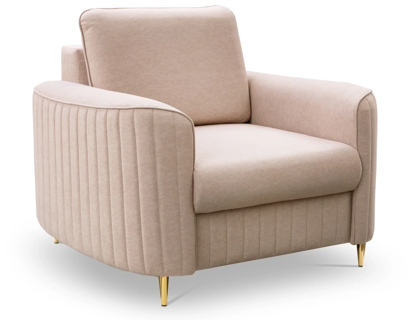 Fotel tapicerowany LAREN nowoczesny na złotych nóżkach do salonu