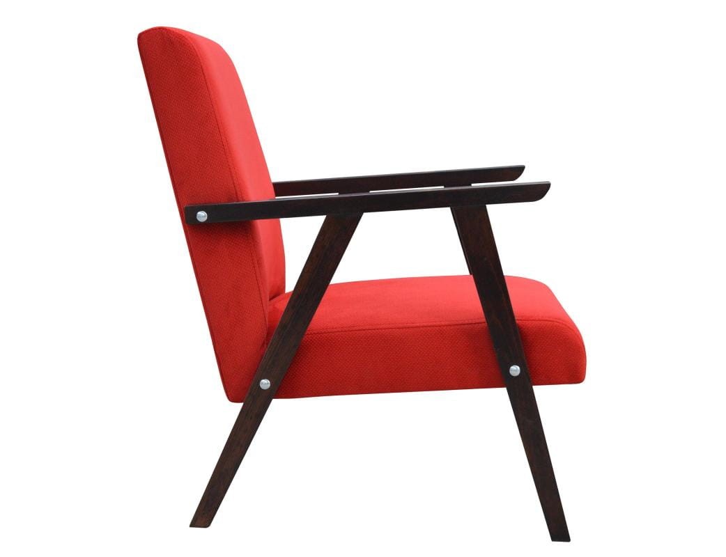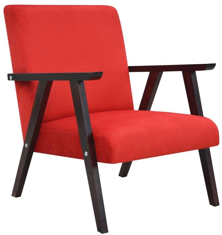 Fotel PRL to stylowy powrót do kultowego wzornictwa minionych dekad. Łączy w sobie estetykę retro z nowoczesnym komfortem użytkowania. Prosta, geometryczna forma i charakterystyczne, delikatnie zwężane nogi wykonane z drewna sprawiają, że fotel wpisuje się zarówno w aranżacje vintage, jak i współczesne wnętrza inspirowane stylem mid-century modern. Miękkie siedzisko i odpowiednio wyprofilowane oparcie zapewniają wygodę podczas codziennego relaksu, a staranne wykończenie i dbałość o detale podkreślają wysoką jakość wykonania.
