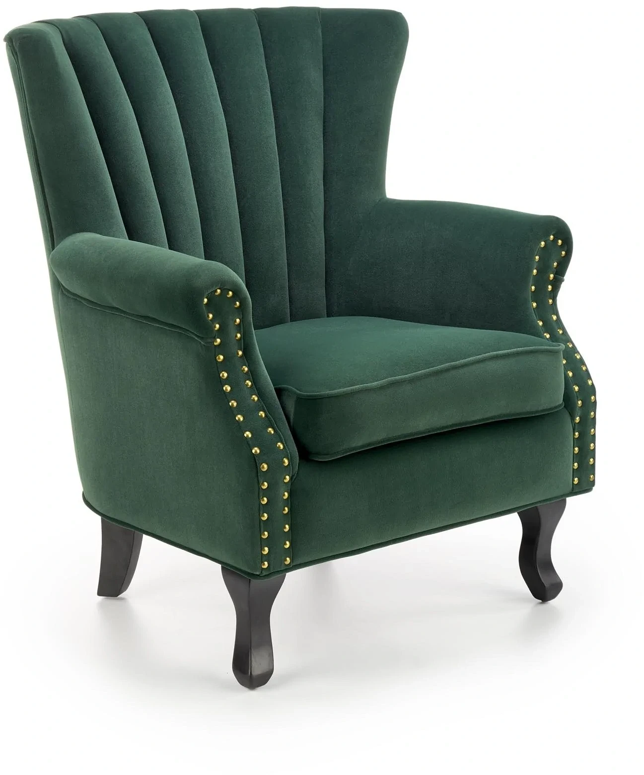 Fotel tapicerowany Titan welurowy na drewnianych nogach do salonu ciemny zielony