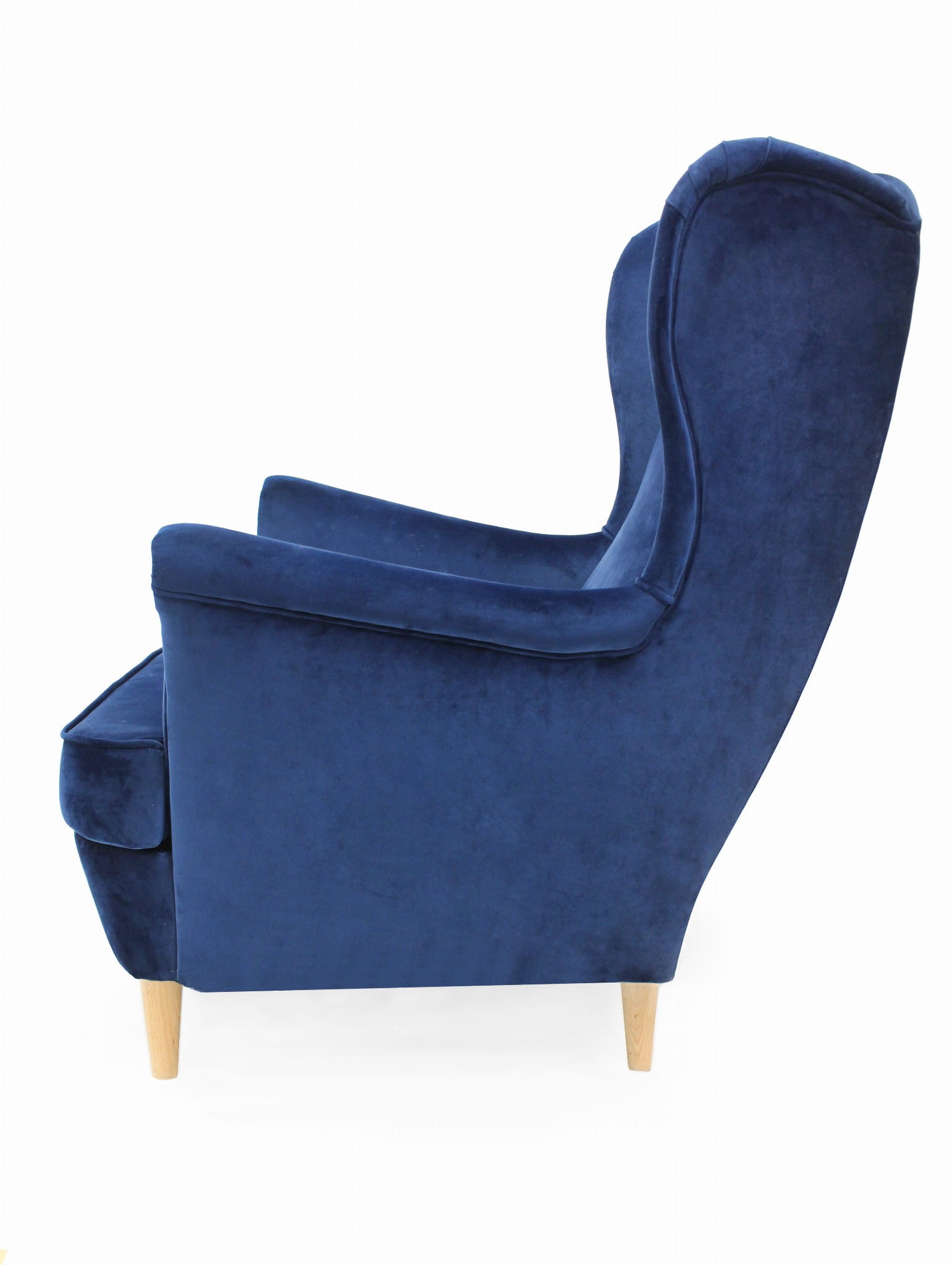 Fotel uszak bez pikowania Lily II z podnóżkiem w stylu skandynawskim