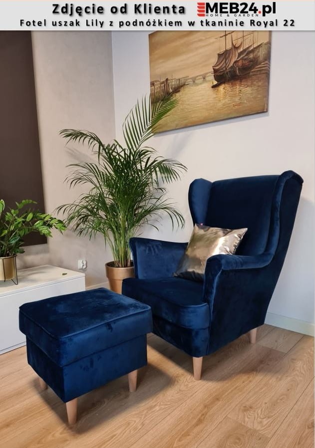 Fotel Lily II z podnóżkiem to pełna wdzięku i estetyki propozycja fotela typu uszak z podłokietnikami, całość utrzymana jest w stylu skandynawskim. Fotel uszak wykonany został z najlepszych materiałów i dzięki dużej ilości tkanin do wyboru pozwala dopasować go kolorystycznie do każdego wnętrza. Subtelne aczkolwiek stabilne 13 centymetrowe nóżki (różne kolory do wyboru) w połączeniu z gładką najlepiej velvetową tkaniną idealnie dopełniają kompozycję tego mebla. Różne typy przyjemnych w dotyku tkanin zadowolą nawet najbardziej wybredne gusta a ich plamoodporność pomoże w zachowaniu czystości i higieny użytkowania fotela przez lata. Fotel typu Uszak zaprojektowany i wykonany został w Polsce co jest gwarancją jakości - Wspieraj