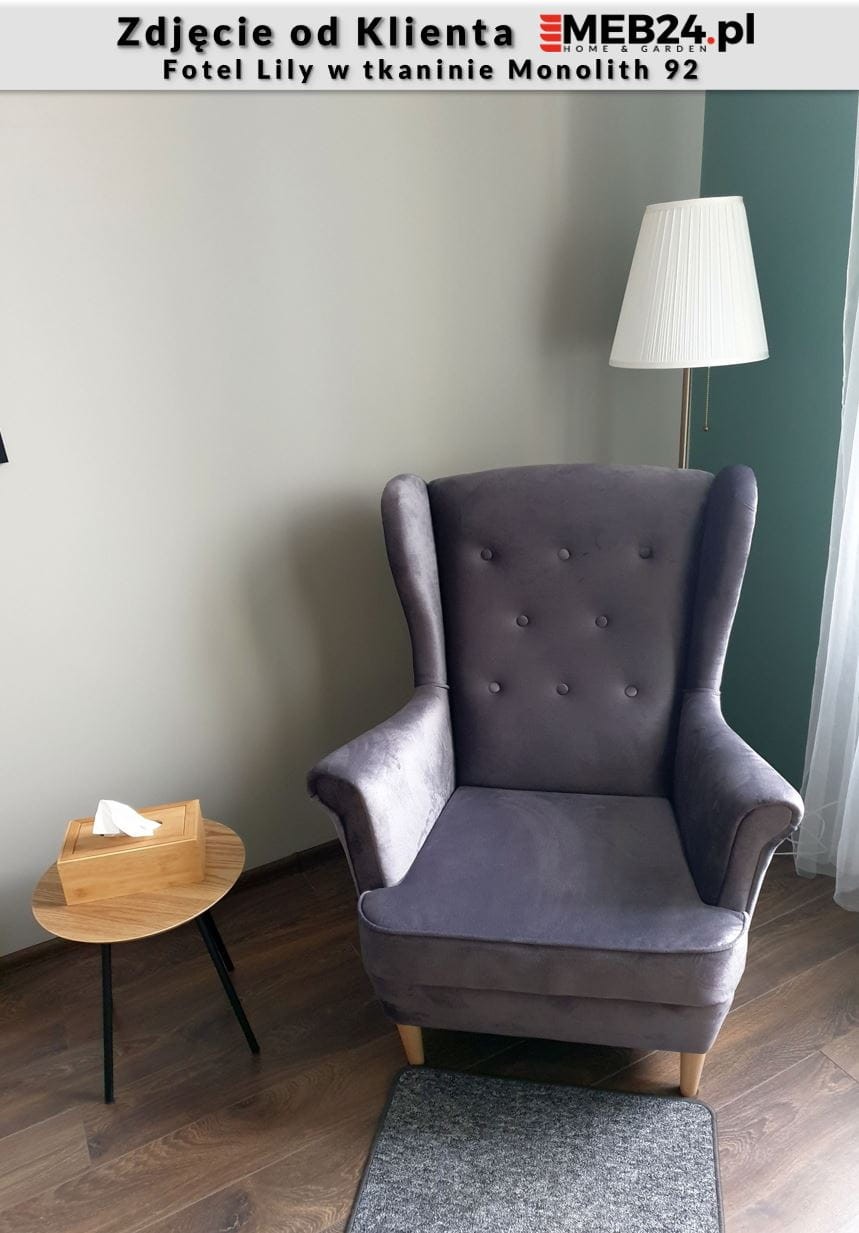 Co wyróżnia Fotel uszak Lily Classic z podnóżkiem: