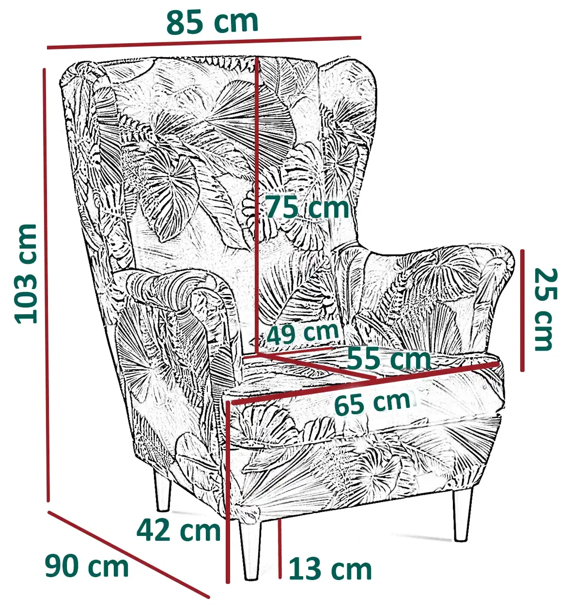 Wymiary fotel tapicerowanego uszak Lily Double: