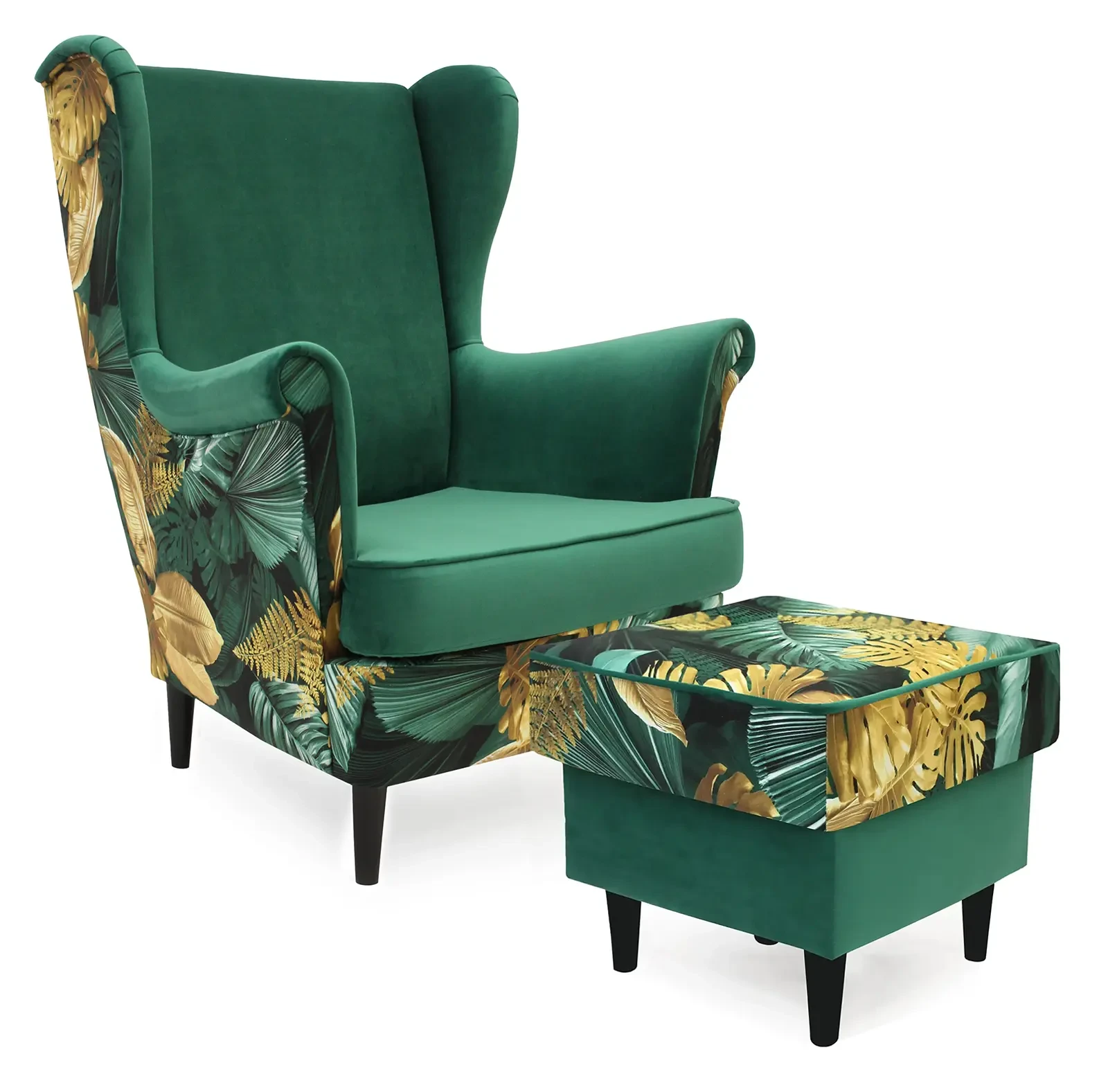 Fotel tapicerowany uszak Lily Double z podnóżkiem to pełna wdzięku i estetyki propozycja utrzymana w stylu skandynawskim. Fotel tapicerowany uszak Lily Double wykonany został z najlepszych materiałów i dzięki wzorzystym tkaninom (podwójny wybór) pozwala dopasować go kolorystycznie do każdego wnętrza. Subtelne aczkolwiek stabilne 13 centymetrowe nóżki (różne kolory do wyboru) idealnie dopełniają kompozycję tego mebla. Różne typy przyjemnych w dotyku tkanin zadowolą nawet najbardziej wybredne gusta a ich plamoodporność pomoże w zachowaniu czystości i higieny użytkowania podnóżka przez lata. Fotel tapicerowany uszak Lily Double z podnóżkiem zaprojektowany i wykonany został w Polsce co jest gwarancją jakości - Wspieraj
