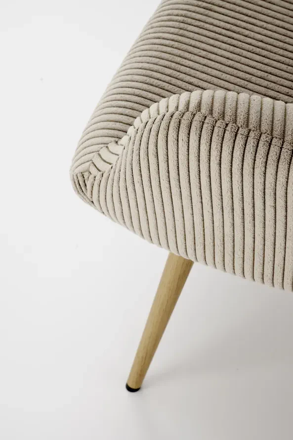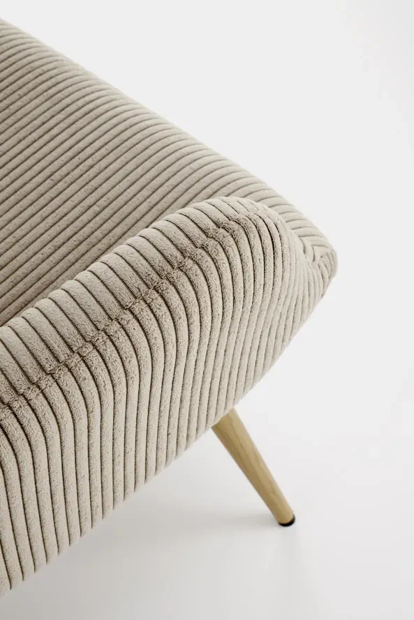 - Elegancki design - nowoczesny styl fotela, podkreślony tkaniną sztruksową w kremowym kolorze, sprawia, że jest on idealnym dodatkiem do każdego wnętrza.