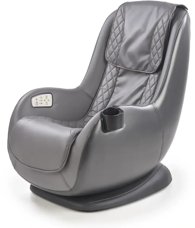 Fotel masujący DOPIO to kwintesencja komfortu zamknięta w nowoczesnej formie. Jego popielata tapicerka z eco skóry prezentuje się niezwykle elegancko, dzięki czemu doskonale wpasuje się w każde nowoczesne wnętrze – od salonu po gabinet. Wyprofilowane siedzisko oraz ergonomiczne oparcie wspierają ciało w naturalnej pozycji, a zintegrowana funkcja masażu przynosi ulgę zmęczonym mięśniom i wspiera regenerację po długim dniu. Dzięki intuicyjnemu panelowi sterowania możesz wybrać odpowiadający Ci program masażu – szybko i bez wysiłku. Dodatkowym atutem jest wbudowane gniazdo USB, które pozwala ładować urządzenia mobilne bez potrzeby wstawania z fotela. Fotel DOPIO to także praktyczne detale: uchwyt na kubek oraz stabilna podstawa w czarnym kolorze wykonana z trwałego polipropylenu. Całość tworzy przemyślany mebel, który stanie się Twoim codziennym azylem relaksu.