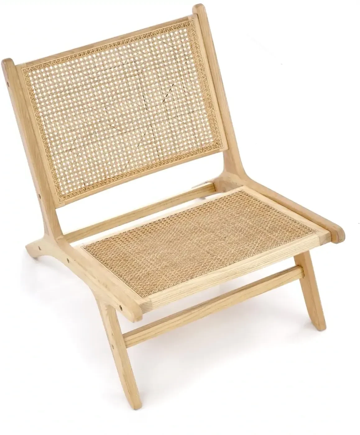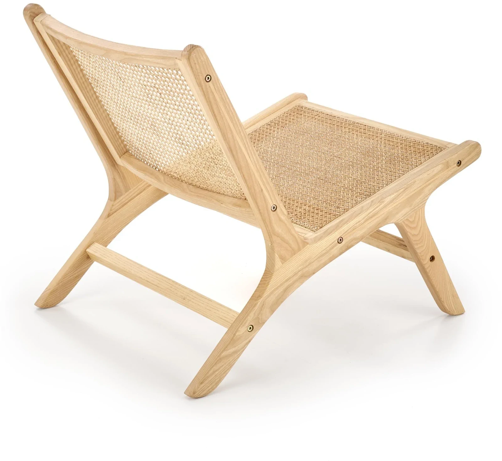 - Naturalne materiały - fotel wykonany jest z litego drewna jesionowego oraz naturalnego rattanu, co zapewnia trwałość i ekologiczną wartość mebla, a także harmonijnie komponuje się z różnymi stylami wnętrzarskimi.