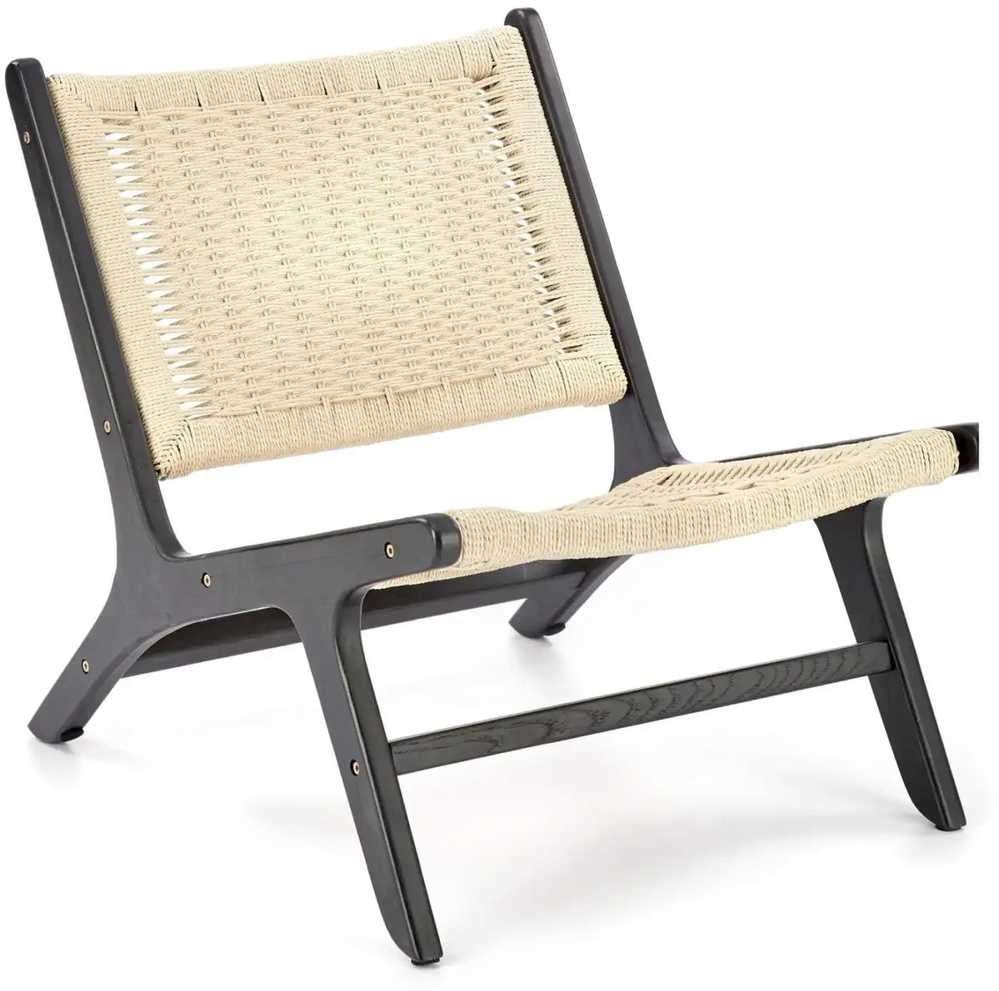 - Naturalne materiały - fotel wykonany z litego drewna kauczukowego oraz plecionego sznurka, co zapewnia trwałość, a także estetykę nawiązującą do natury, która doskonale komponuje się z różnymi stylami wnętrzarskimi.