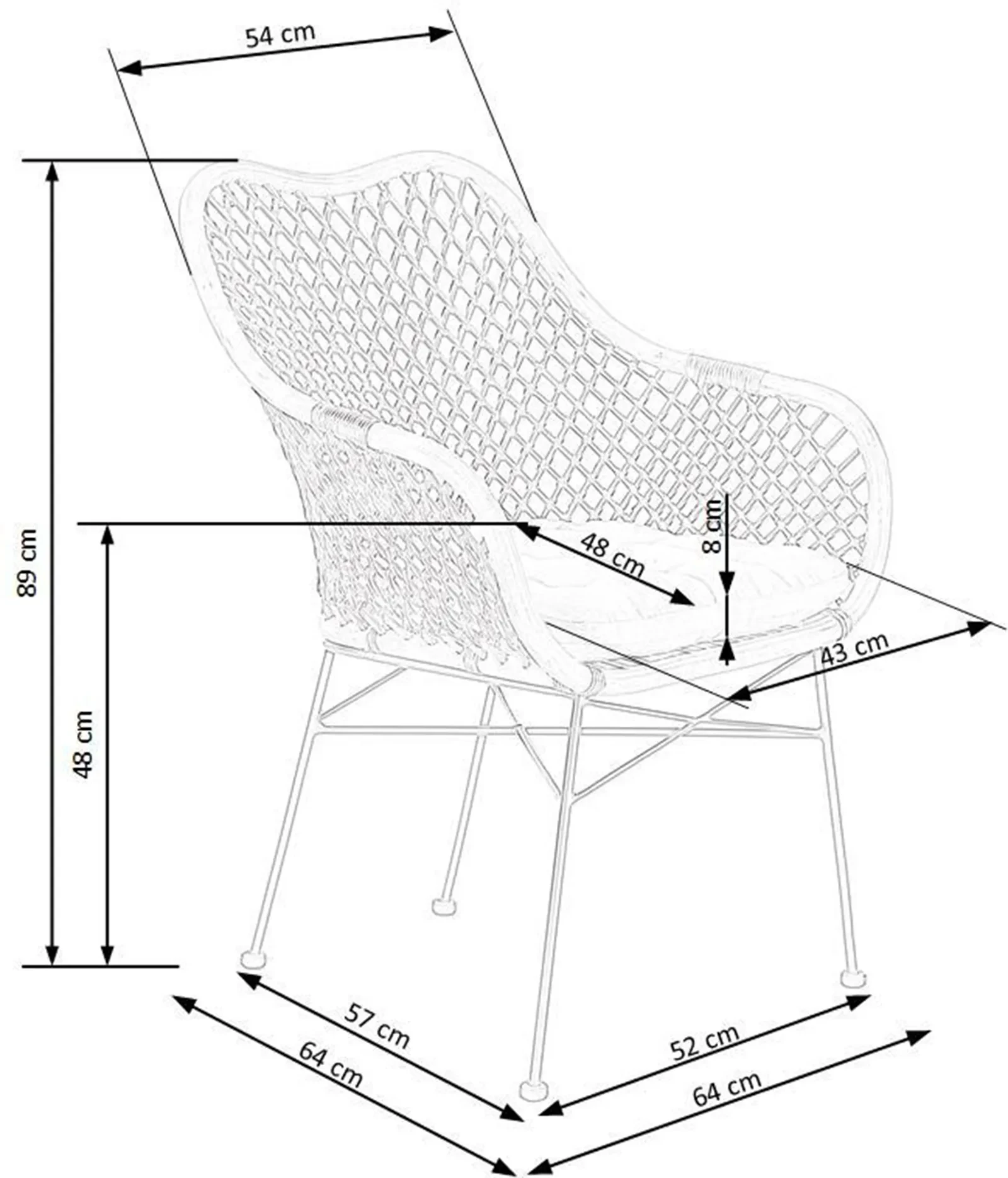 - Wysokość siedziska: 48 cm