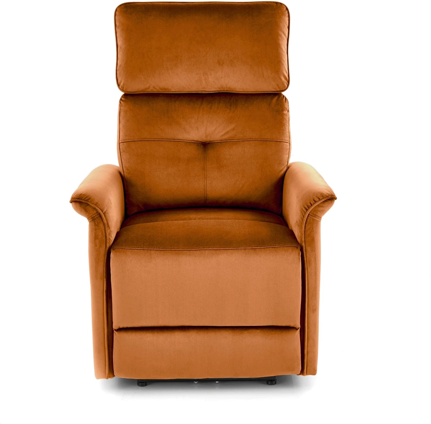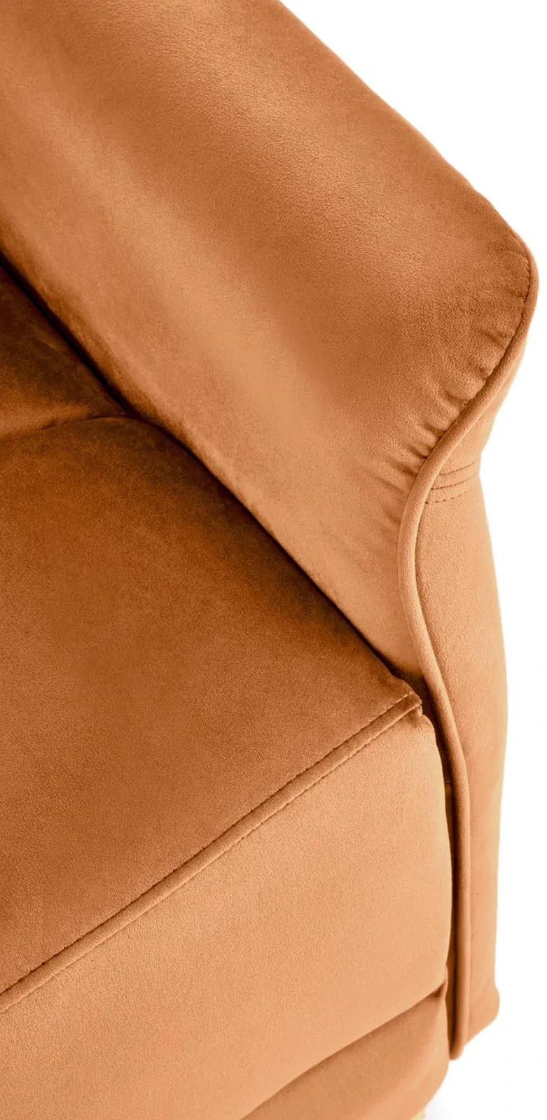 - Materiał: Velvet w kolorze cynamonowym (BLUVEL 4215) – tkanina velvet to synonim luksusu i elegancji, a jednocześnie jest niezwykle odporna na zabrudzenia i łatwa w pielęgnacji. Delikatna w dotyku, dodaje wnętrzu przytulności i ciepła, jednocześnie nadając fotelowi nowoczesny wygląd.