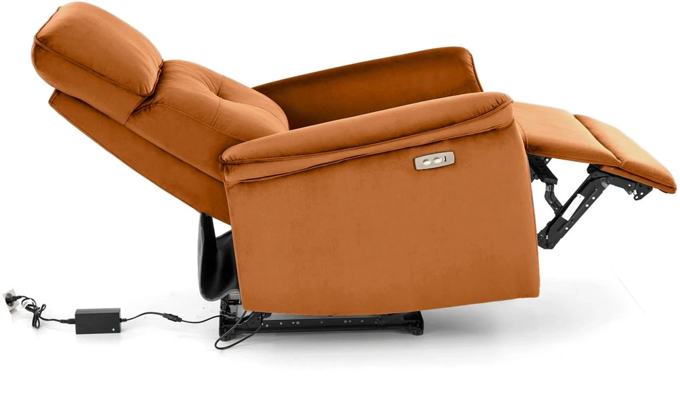- Funkcja elektrycznego rozkładania - pozwala na pełne dostosowanie pozycji siedziska, zapewniając maksymalny komfort podczas odpoczynku, czytania lub oglądania telewizji. Elektryczne sterowanie ułatwia obsługę, dzięki czemu każda zmiana pozycji jest płynna i bez wysiłku.