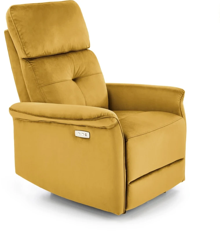 Fotel wypoczynkowy Semir z funkcją elektrycznego rozkładania/gniazdo USB do salonu musztardowy