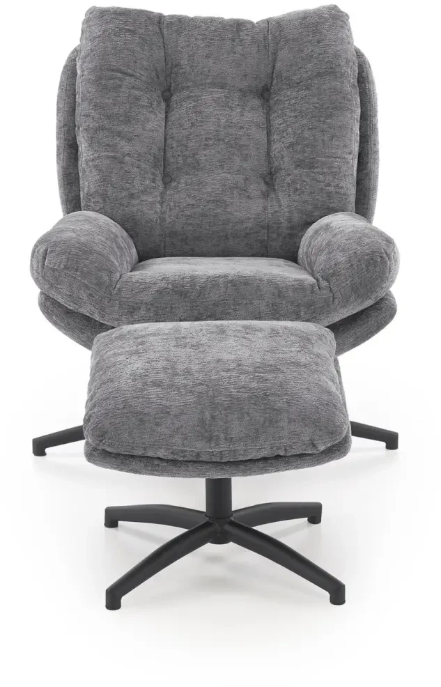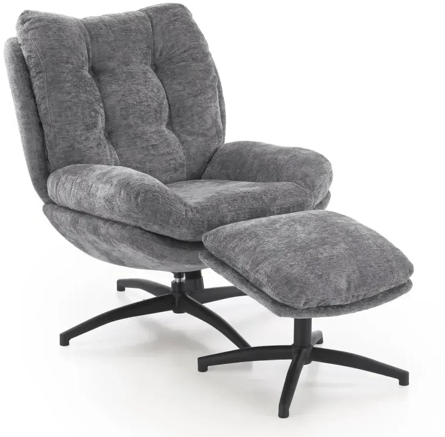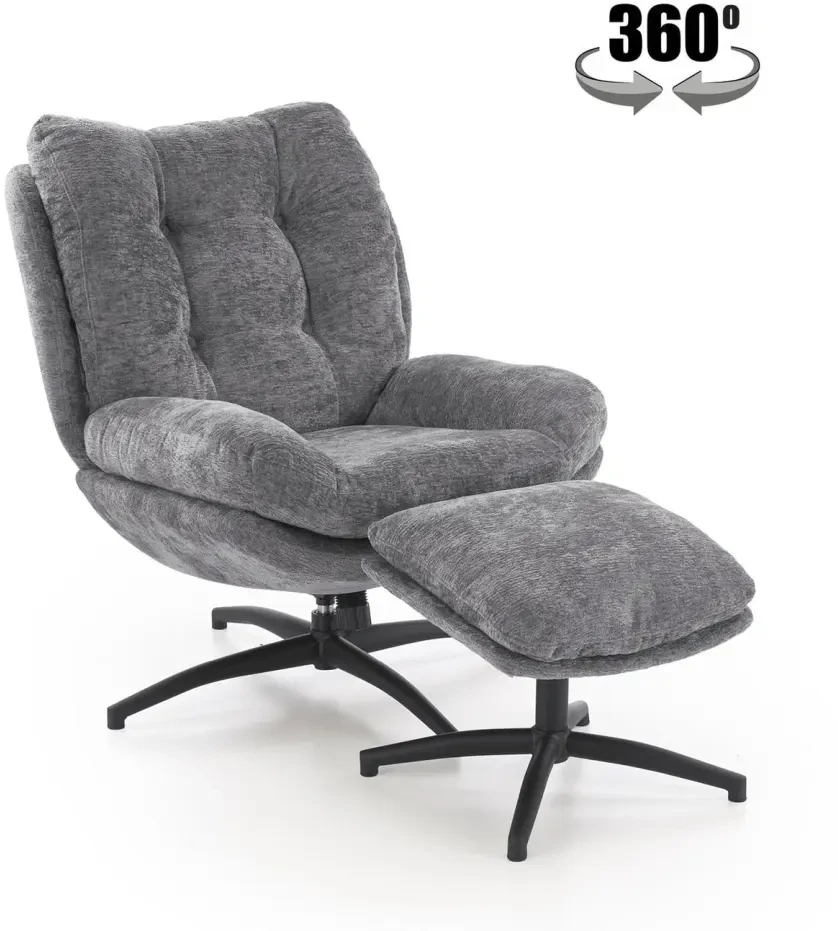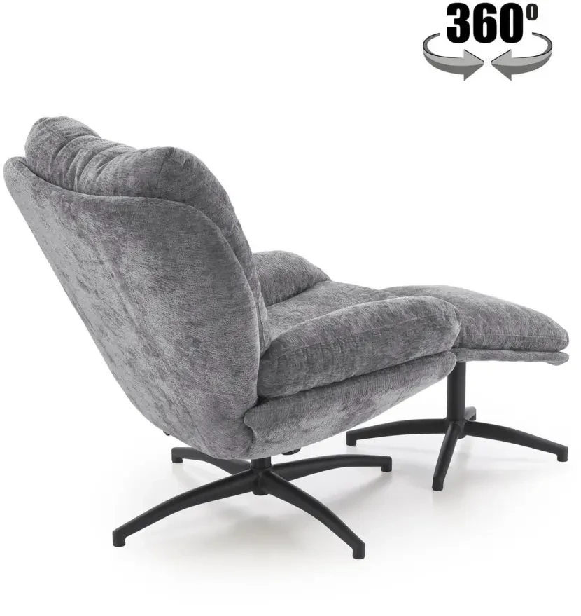 Fotel z podnóżkiem Pesto funkcja kołyski i obrotowe siedzisko do salonu popielaty