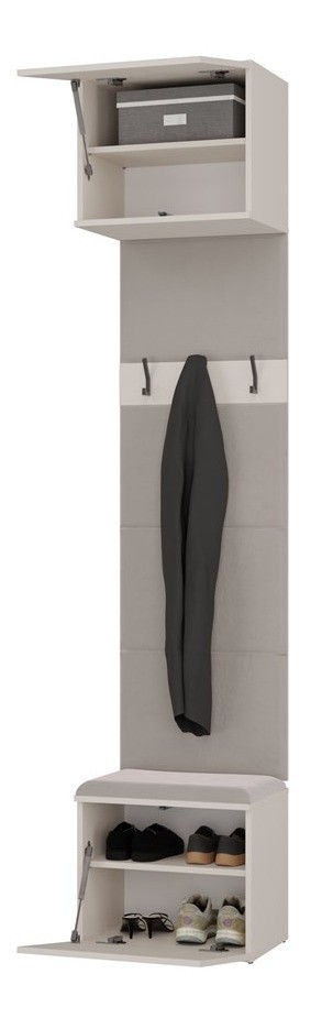 - Tapicerowane siedzisko z zamykaną dolną szafką na buty