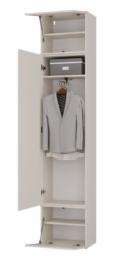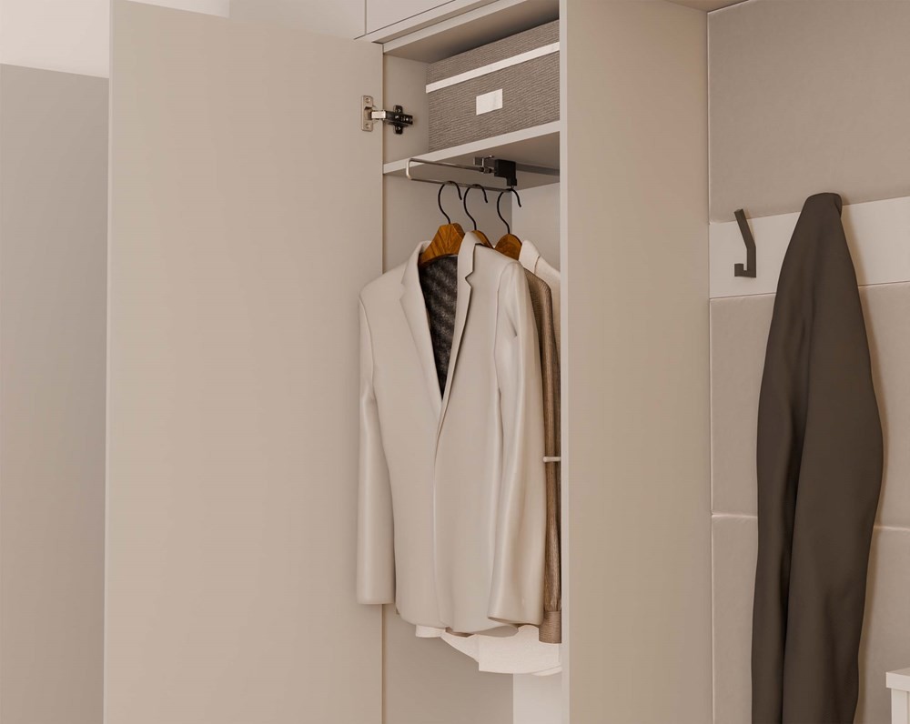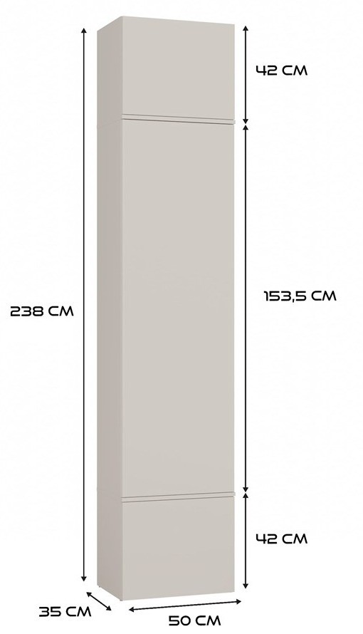 - Optymalny podział przestrzeni – zestaw zawiera 2 szafy oraz 2 wieszaki, każdy element o głębokości 35 cm i wysokości 238 cm, co zapewnia wyjątkową pojemność i możliwość przechowywania odzieży w różnym układzie.