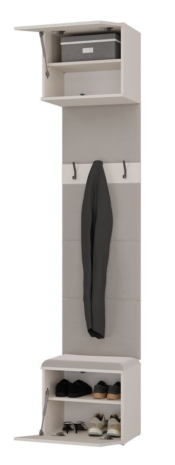 - Tapicerowane siedzisko z zamykaną dolną szafką na buty