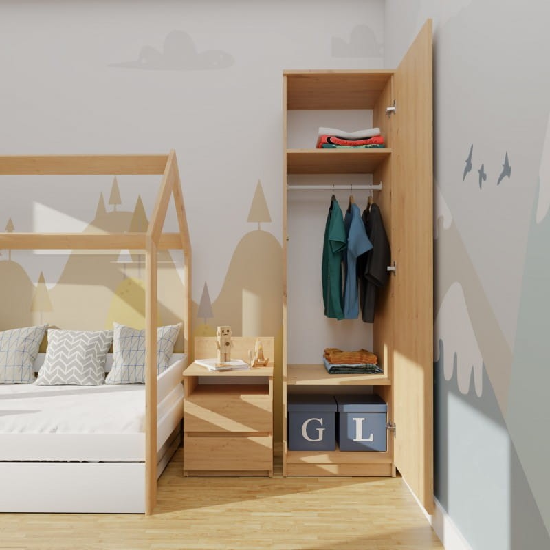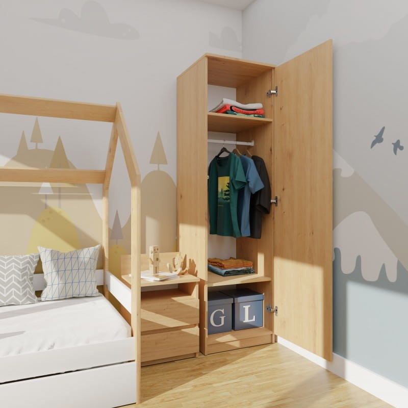 - Możliwość montażu półek lub drążka na ubrania w zależności od wymagań.