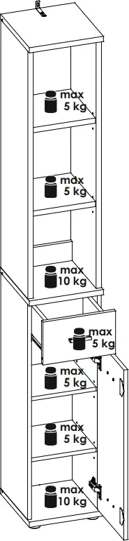 - Praktyczny układ mebli - otwarte półki i zamknięte szafki pozwalają wygodnie przechowywać i eksponować przedmioty.