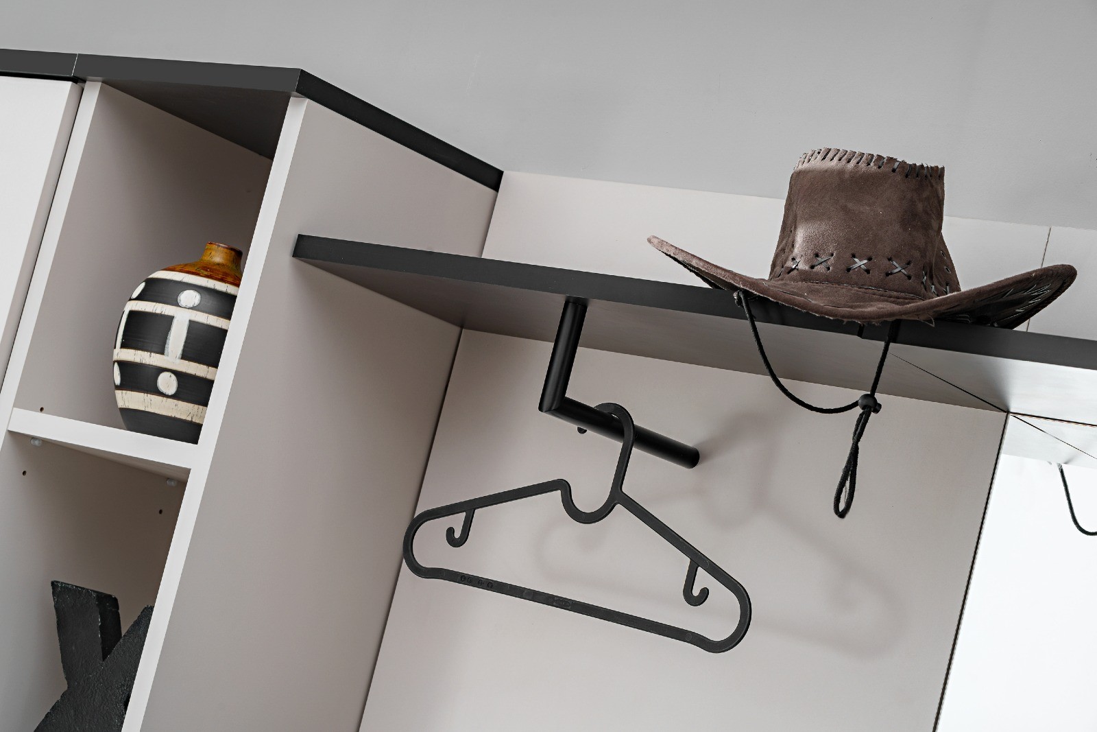 Zestaw Hugo II to stylowa i funkcjonalna propozycja do nowoczesnych wnętrz, łącząca w sobie elegancję i praktyczność. Harmonijne zestawienie kolorów cashmere i czerni sprawia, że meble prezentują się wyjątkowo efektownie i wpisują się w najnowsze trendy aranżacyjne. Dzięki różnorodnym elementom – szafkom, półkom i szufladom – zestaw oferuje mnóstwo miejsca do przechowywania i ekspozycji. Matowe wykończenie podkreśla jego nowoczesny charakter i dodaje subtelności.