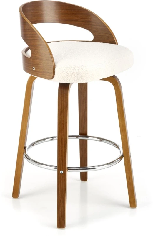 Szukasz hokera, który doda Twojej kuchni, wyspie lub strefie barowej nuty elegancji i jednocześnie zapewni wyjątkowy komfort? Model H110 w kremowo-orzechowym wykończeniu to idealne rozwiązanie, które łączy ergonomię z modnym designem. Miękkie siedzisko pokryte tkaniną typu boucle gwarantuje przyjemność użytkowania nawet przez dłuższy czas, a zaokrąglone oparcie z giętej sklejki nie tylko wspiera plecy, ale także przyciąga wzrok nietuzinkowym kształtem. Dodatkowym atutem jest stabilny chromowany podnóżek, który podnosi wygodę siedzenia, ułatwiając relaks w pozycji półsiedzącej. Ciepła, orzechowa kolorystyka w połączeniu z przyjemną kremową tapicerką sprawia, że hoker doskonale odnajdzie się zarówno we wnętrzach nowoczesnych, jak i tych z nutą retro. Model H110 to doskonały wybór dla osób, które cenią sobie detale, solidność wykonania i niebanalne wzornictwo.