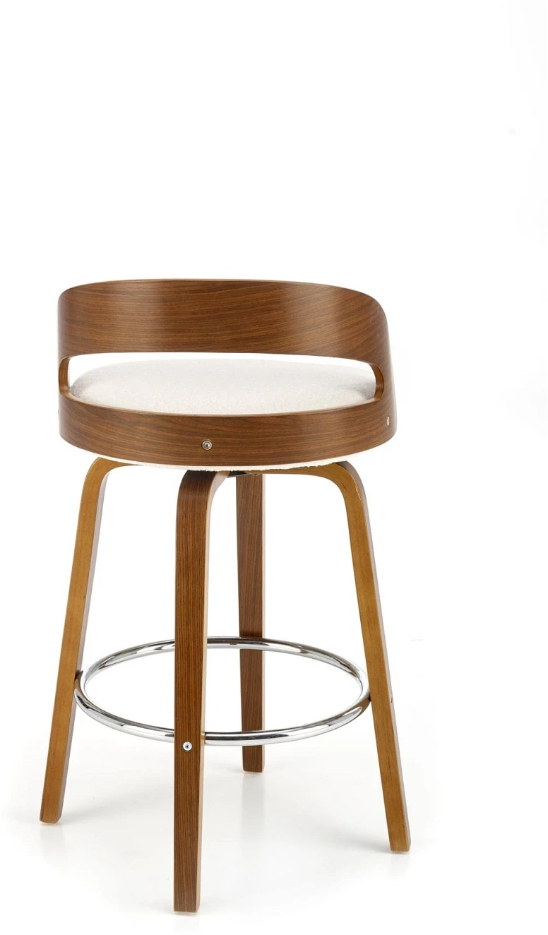 Hoker barowy H110 tapicerowany nowoczesny z oparciem do kuchni kremowy/orzechowy