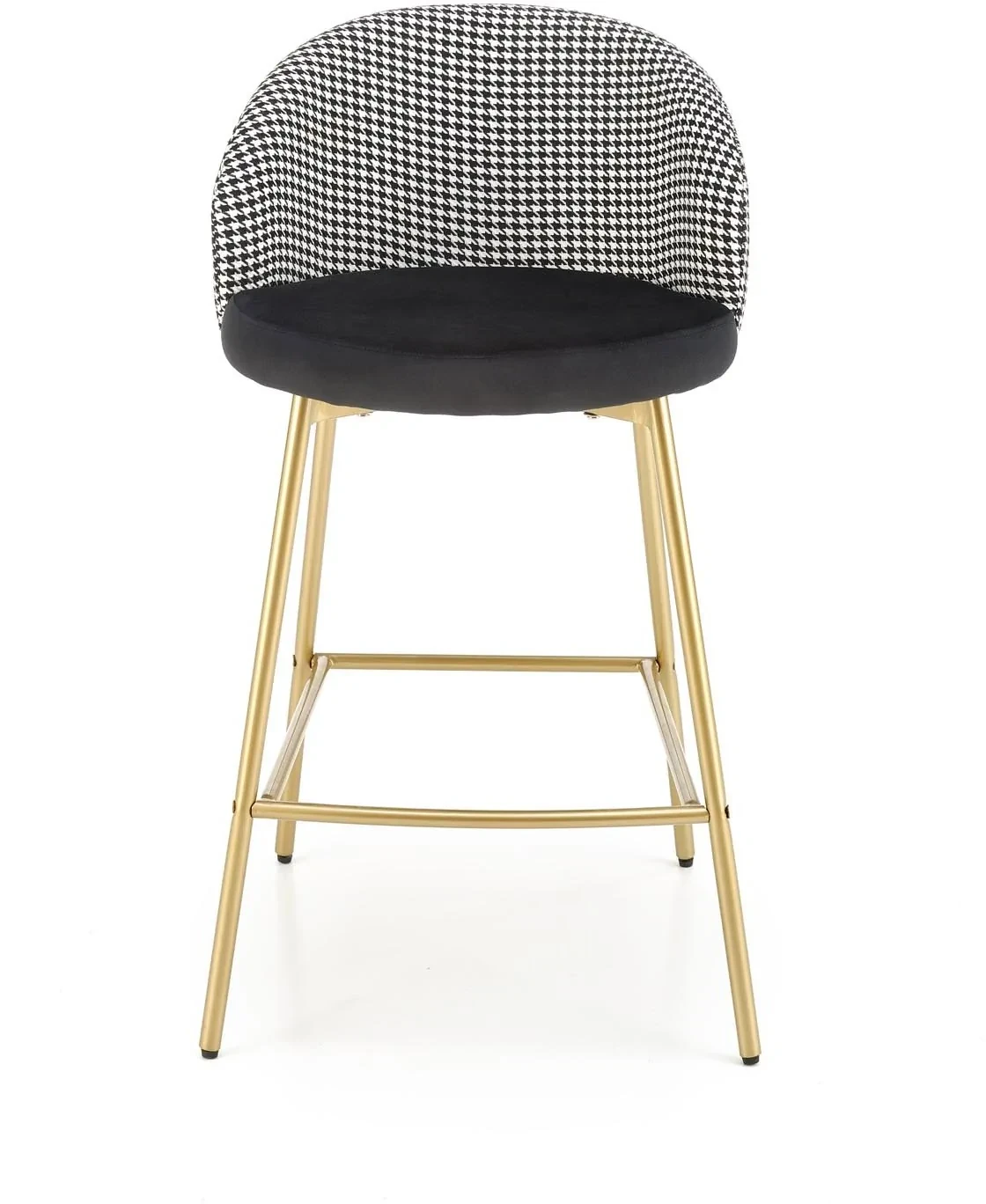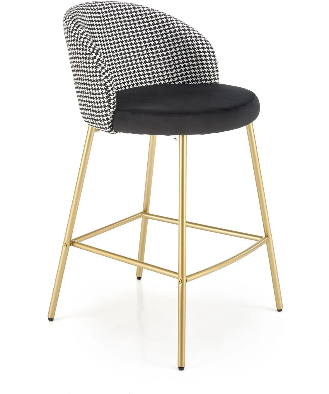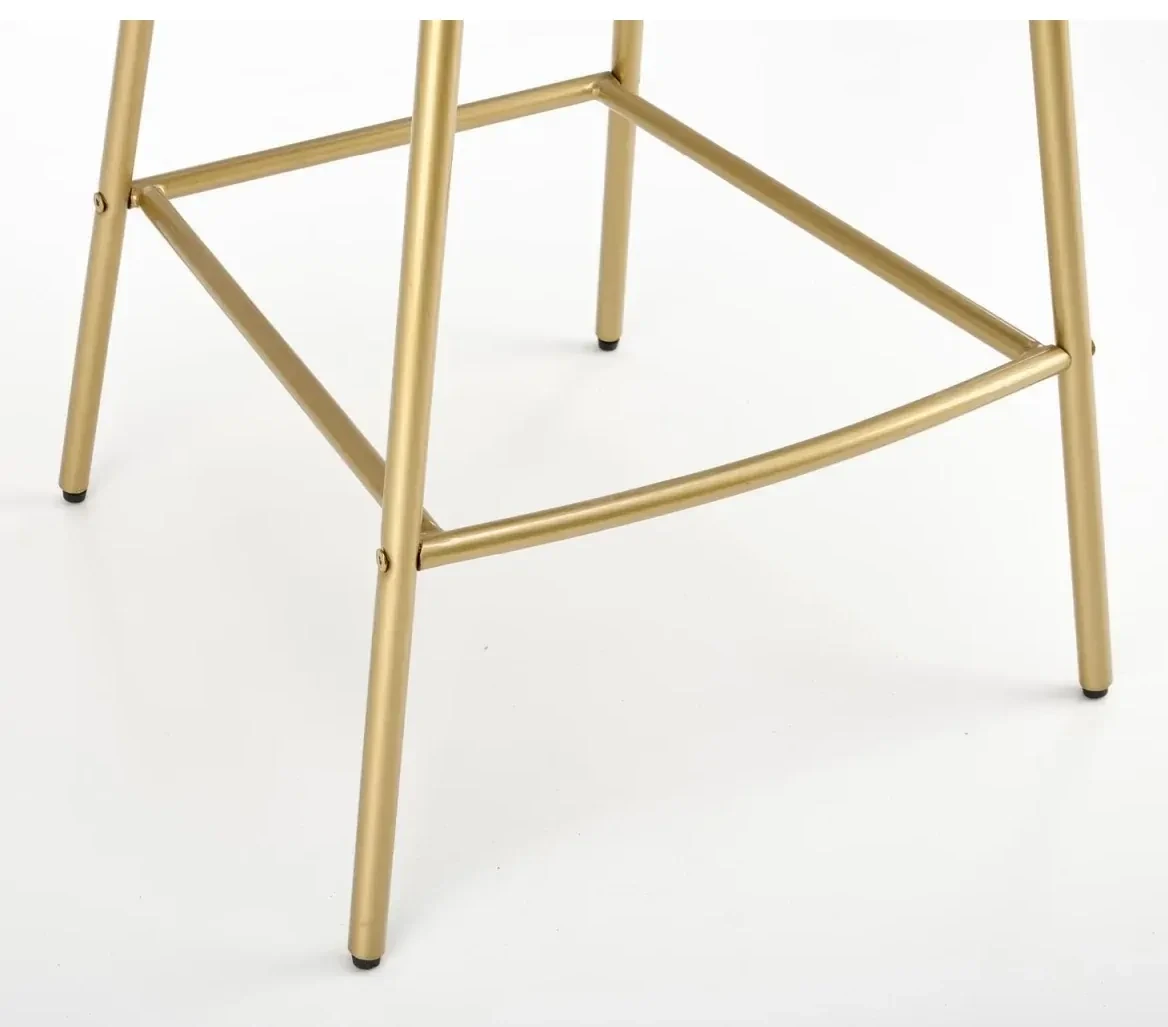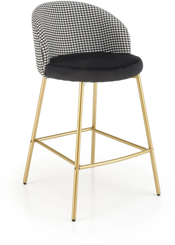 Hoker H113 to stylowy mebel barowy, który łączy elegancję nowoczesnego designu z nutą luksusu w stylu glamour. Połączenie czarnej tapicerki z białymi akcentami oraz złotym wykończeniem stelaża tworzy efektowną kompozycję, idealną do nowoczesnych kuchni, jadalni czy wysp kuchennych. Miękkie siedzisko z tkaniny velvet zapewnia wyjątkowy komfort, a solidna konstrukcja ze stali malowanej proszkowo gwarantuje trwałość i stabilność użytkowania.