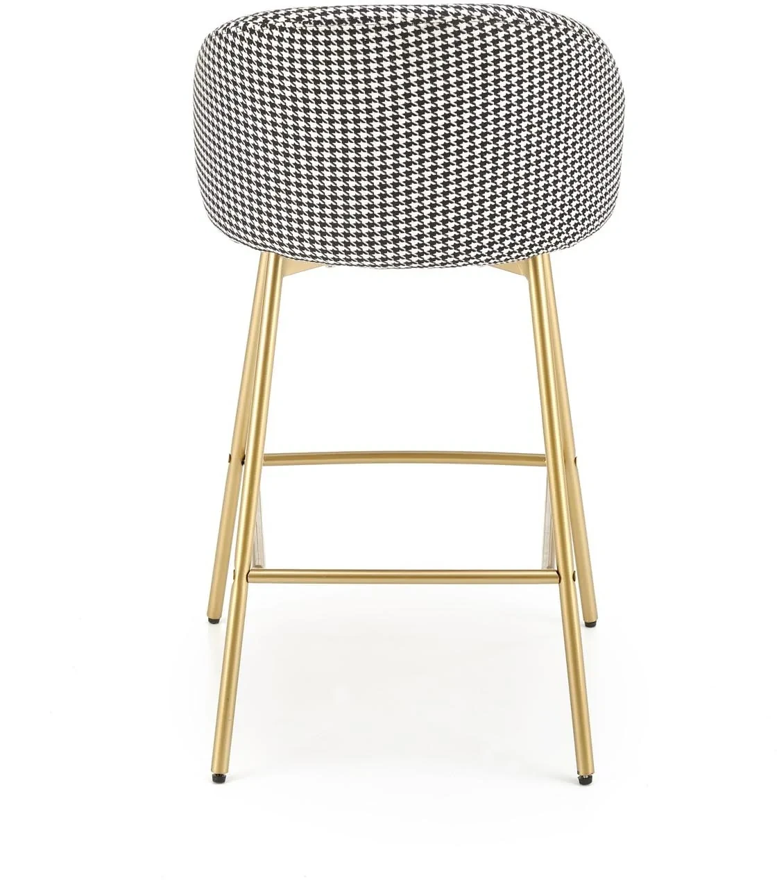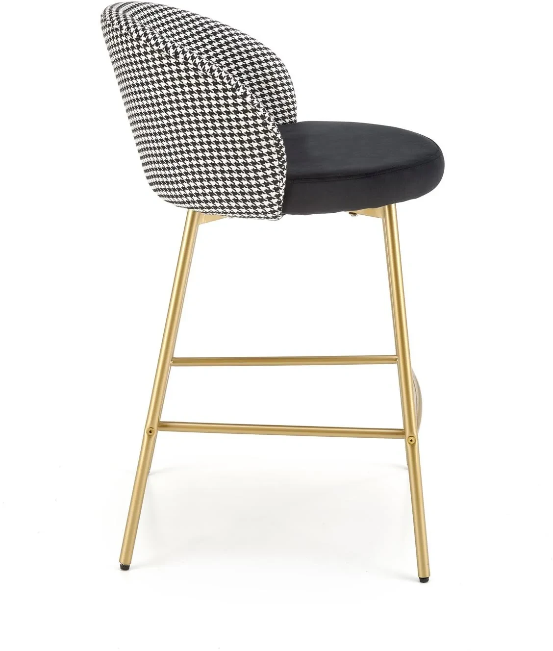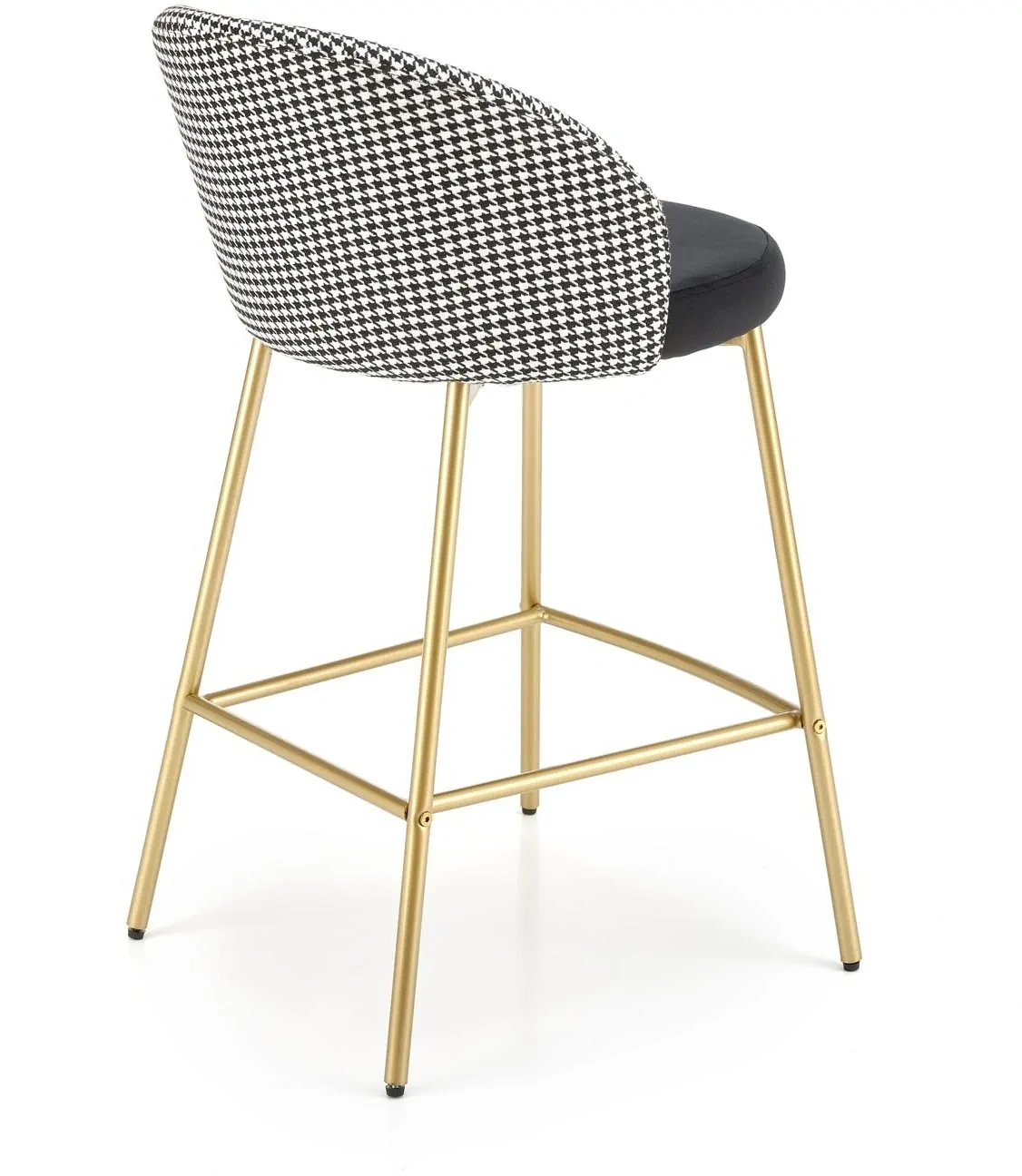 Hoker H113 to stylowy mebel barowy, który łączy elegancję nowoczesnego designu z nutą luksusu w stylu glamour. Połączenie czarnej tapicerki z białymi akcentami oraz złotym wykończeniem stelaża tworzy efektowną kompozycję, idealną do nowoczesnych kuchni, jadalni czy wysp kuchennych. Miękkie siedzisko z tkaniny velvet zapewnia wyjątkowy komfort, a solidna konstrukcja ze stali malowanej proszkowo gwarantuje trwałość i stabilność użytkowania.