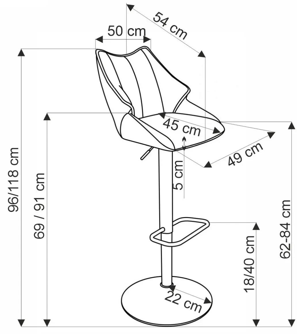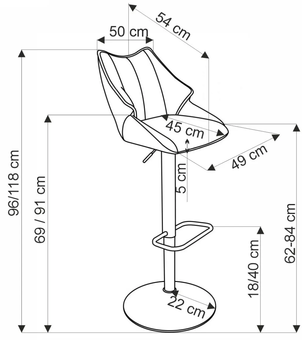 - Wysokość siedziska: 62–84 cm