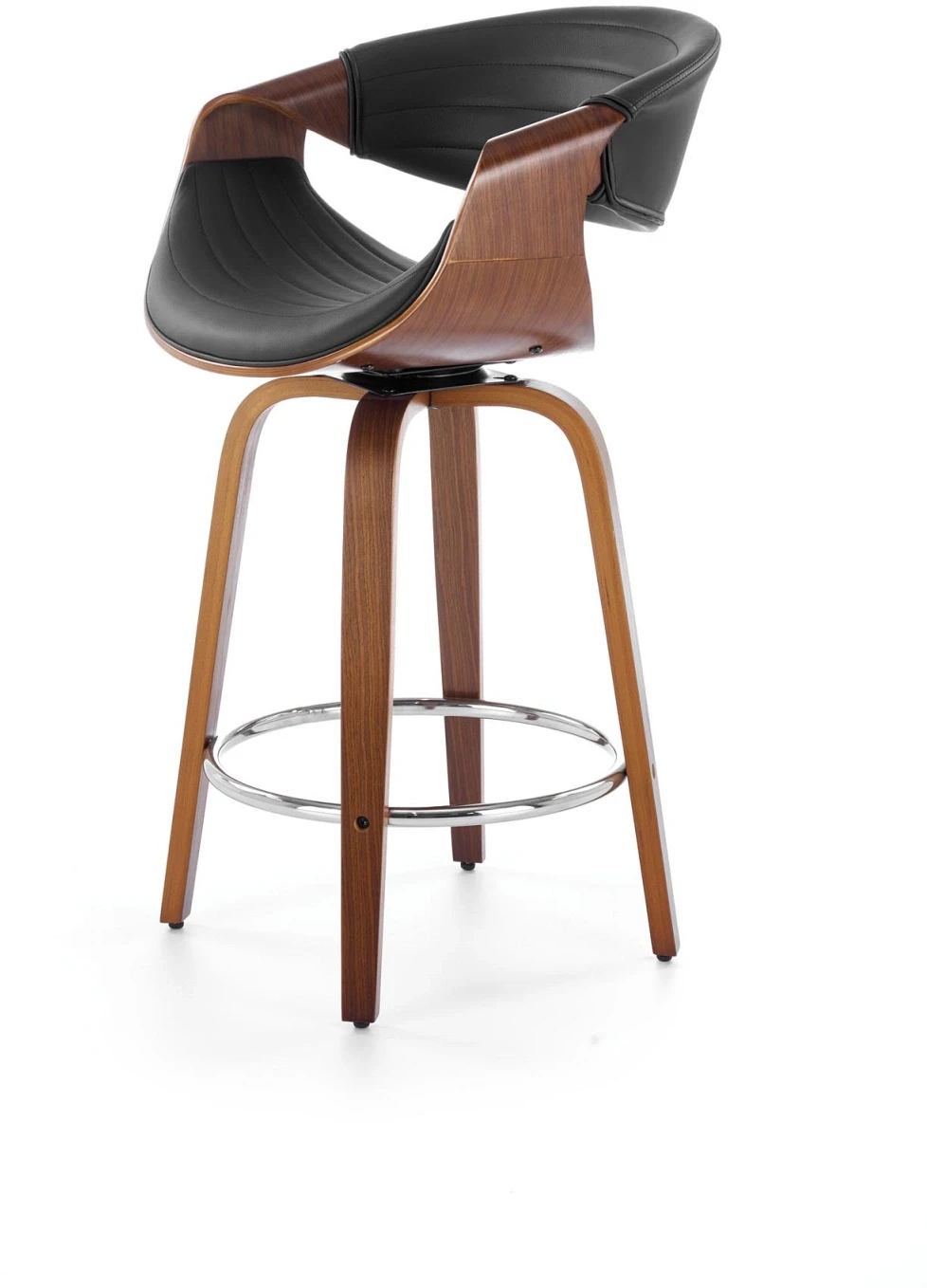 Hoker barowy H123 eco skóra nowoczesny z oparciem do kuchni czarny/orzechowy