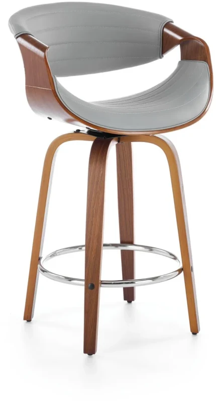 Hoker barowy H123 eco skóra nowoczesny z oparciem do kuchni popielaty/orzechowy