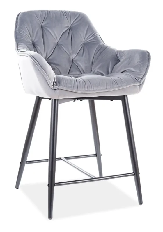 Hoker Cherry H-2 Velvet to wyrafinowany model, który idealnie wpisze się w stylistykę wnętrz glamour. Siedzisko tapicerowane jest niezwykle miękką i miłą w dotyku szarą tkaniną aksamitną Bluvel 14. Hoker posiada ozdobne pikowania, które dodają mu elegancji i stylu. Siedzisko usytuowane jest na metalowych nogach w czarnym, matowym kolorze, co tworzy stylowy dodatek do pomieszczeń nowoczesnych i klasycznych. Hoker Cherry H-2 Velvet będzie praktycznym uzupełnieniem każdego wnętrza. Produkt wykonany został z materiałów wysokiej jakości, z dbałością o najmniejszy szczegół. Idealnie wpisze się w nowoczesne wnętrze o klasycznej linii, jak również doda elegancji i stylu.
