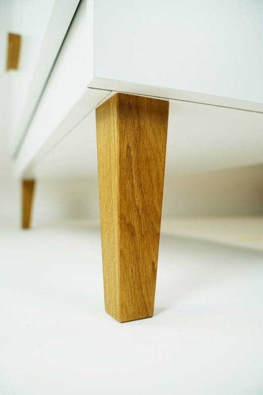 - Wykonanie: matowa płyta MDF 18 mm, lakierowane lite drewno dębowe 1-go gatunku