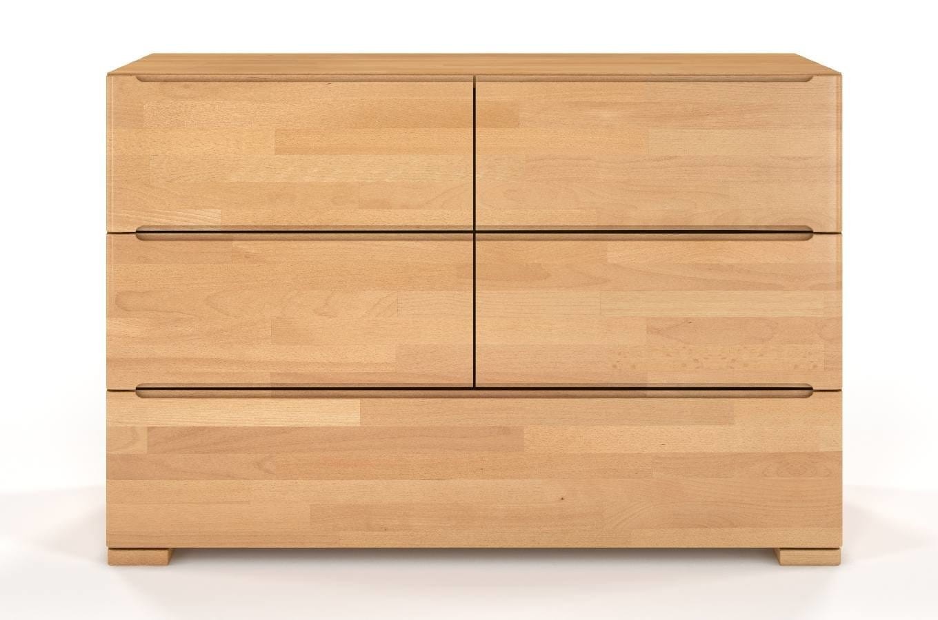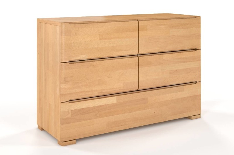 Bukowa komoda SPARTA z pięcioma szufladami to mebel prosty, skromny w odbiorze wizualnym, ale jednocześnie zaskakująco pojemny. 3 głębokie szuflady pozwalają zachować w pomieszczeniu ład i porządek.
