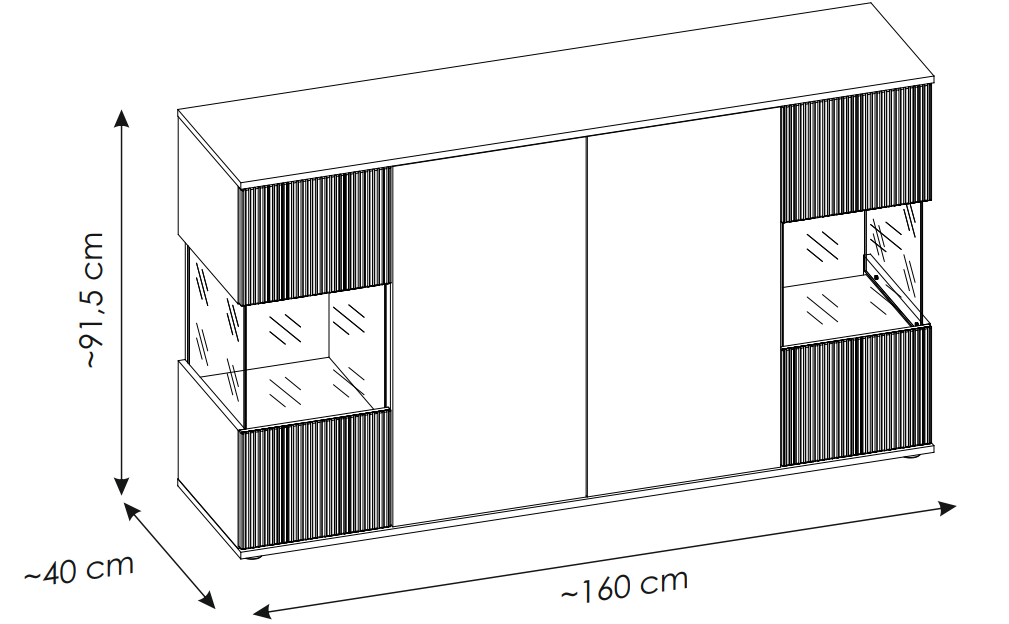- szerokość 160 cm x wysokość 92 cm x głębokość 40 cm