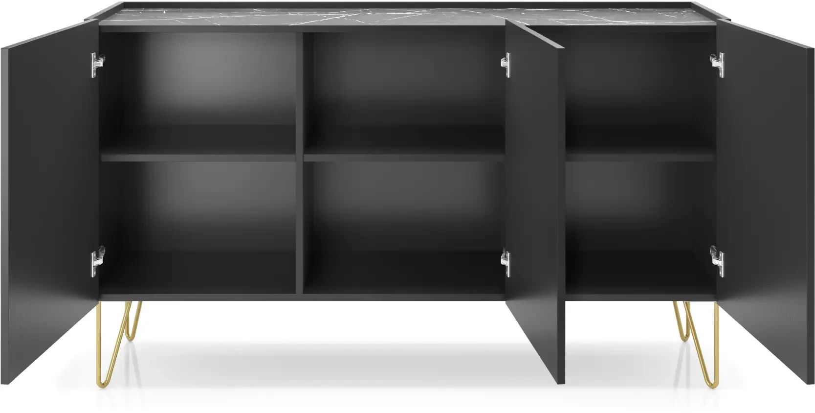 Harmony to bardzo pojemna i nowoczesna komoda. Komoda Harmony została wyposażona w pojemne półki, dzięki czemu stanowi idealne miejsce do przechowywania ubrań oraz pozostałych elementów garderoby, jak czapki, szale itp. Komoda sprawdzi się zarówno w salonie, sypialni, jak też pokoju dziecięcym, czy młodzieżowym. Nowoczesny, minimalistyczny design połączony grafitową czernią i złotymi nogami sprawia, że komoda Harmony prezentuje się niezwykle stylowo i nowocześnie. Mebel został zaprojektowany i wykonany w Polsce co jest gwarancją jakości - Wspieraj