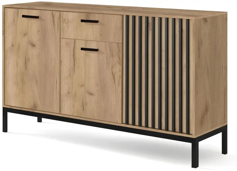 Komoda Lamino KM-1 z lamelami i metalowymi nogami dąb craft/czarny