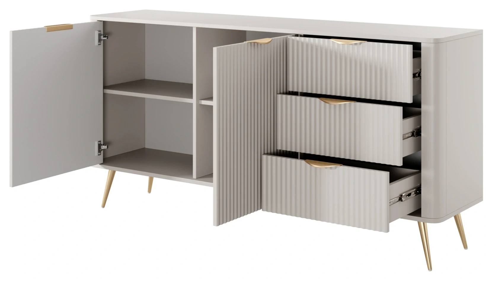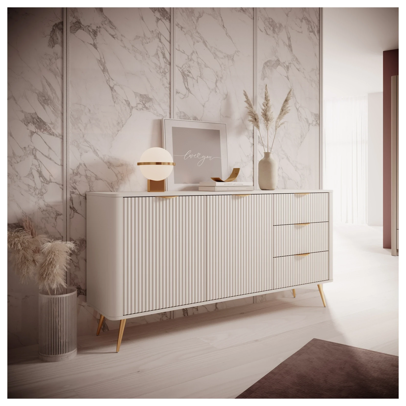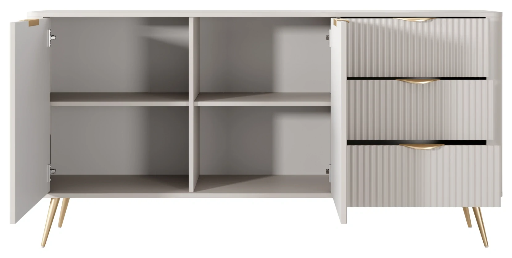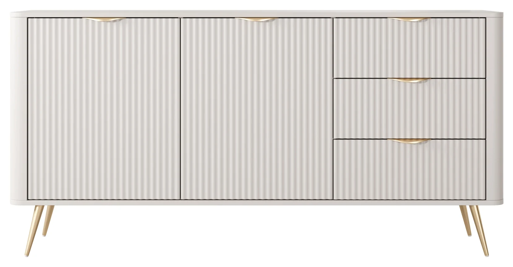 Komoda Lante ryflowana dwudrzwiowa z szufladami do salonu 163 cm beżowa