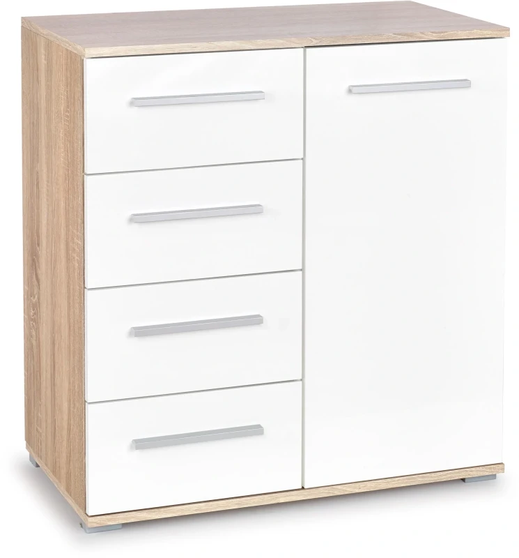 Komoda Lima 77 cm z 4 szufladami dąb sonoma / biały wysoki połysk
