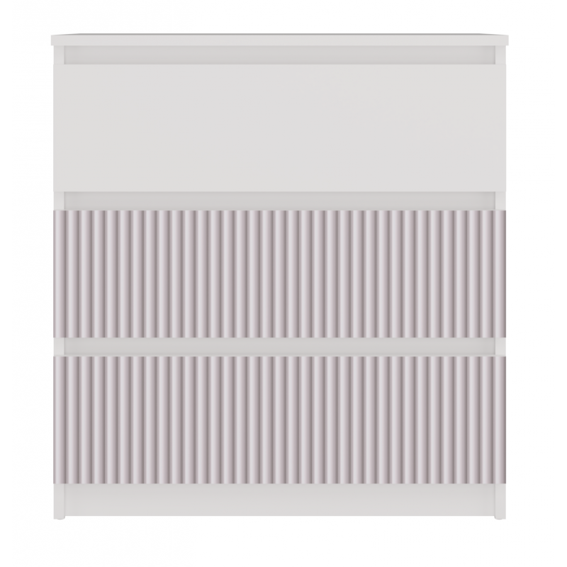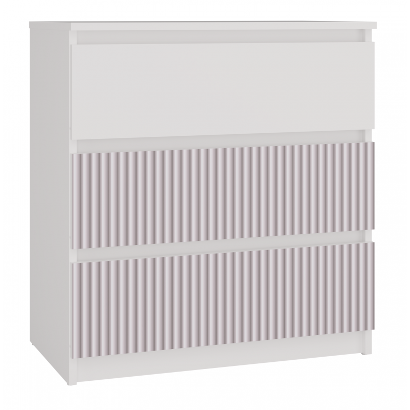 Nowoczesna komoda Malwa M3 Arteso w kolorze biało-różowym to elegancki i praktyczny mebel, który wprowadzi do pokoju dziecka subtelny, dziewczęcy akcent. Jej minimalistyczny design w bieli został urozmaicony delikatnym, różowym nadrukiem na frontach dolnych szuflad, co nadaje wnętrzu przytulności i lekkości. Trzy pojemne szuflady pomagają utrzymać porządek, a bezuchwytowe fronty podkreślają nowoczesny charakter mebla i zwiększają wygodę użytkowania.