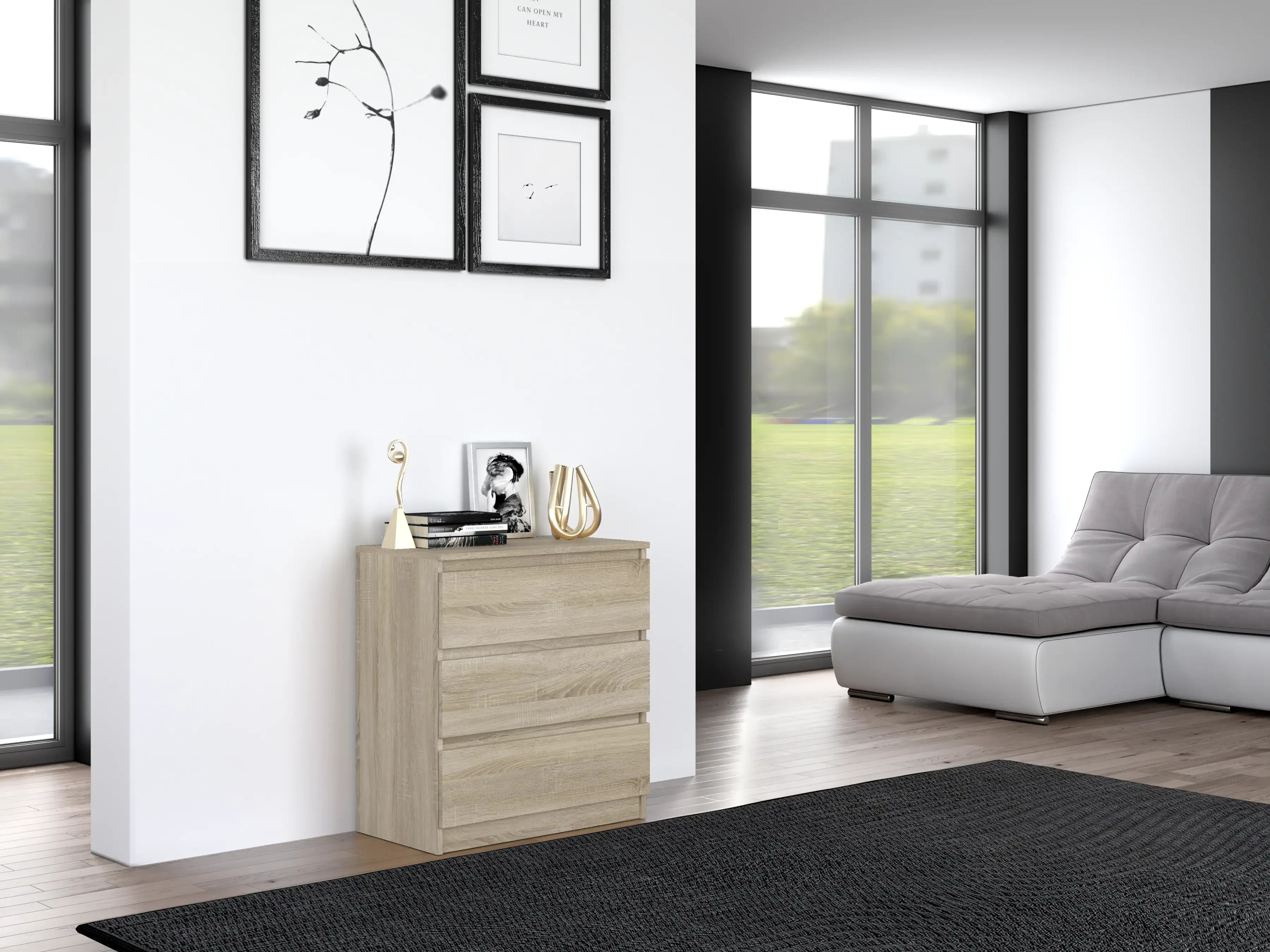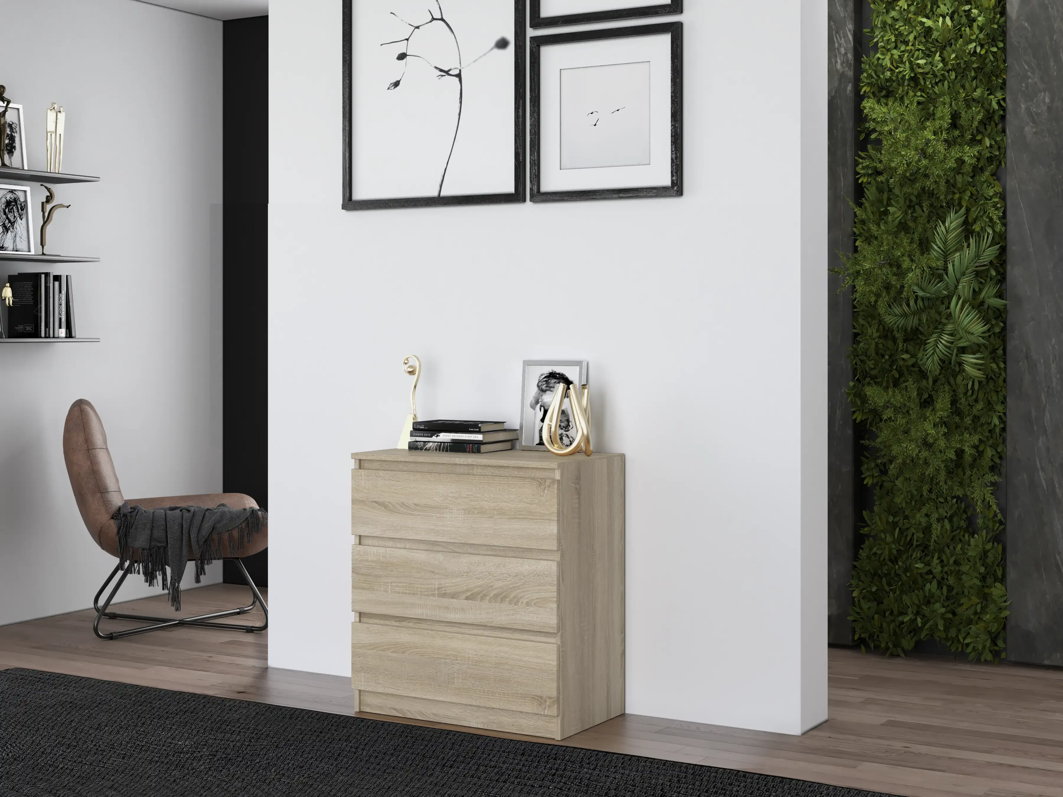 Nowoczesna komoda z kolekcji Malwina to funkcjonalny i pakowny mebel, który urządzi wnętrze Twojej sypialni, salonu lub pokoju dziecka. Uniwersalny wygląd sprosta oczekiwaniom wszystkich, którzy cenią połączenie prostoty i elegancji.