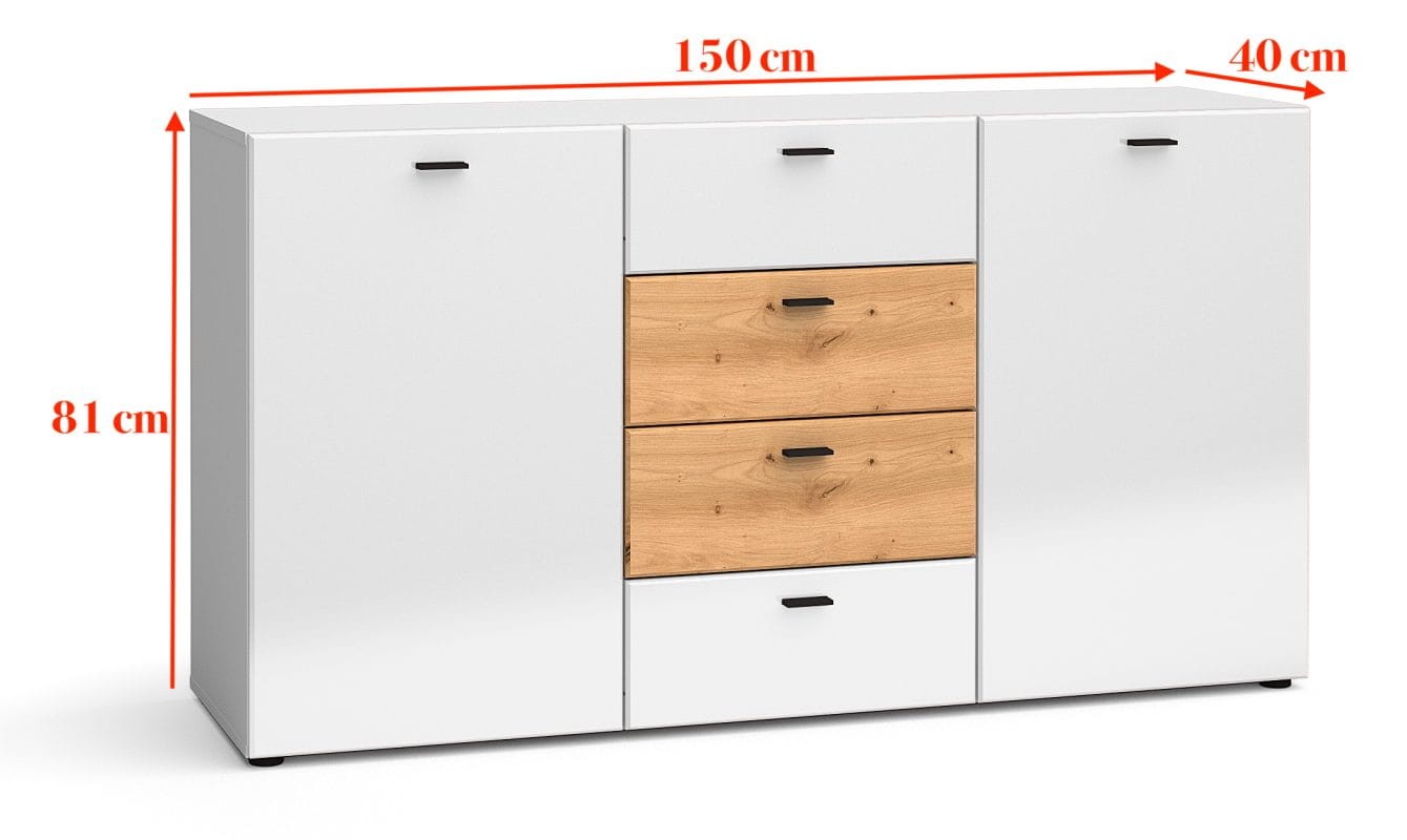 Komoda MILA biały połysk/ dąb artisan