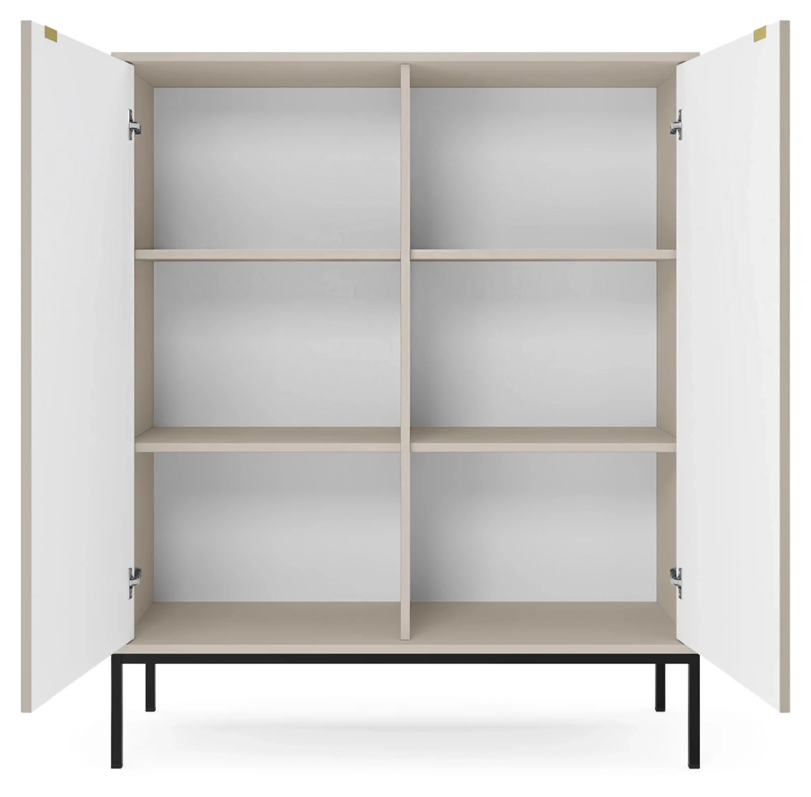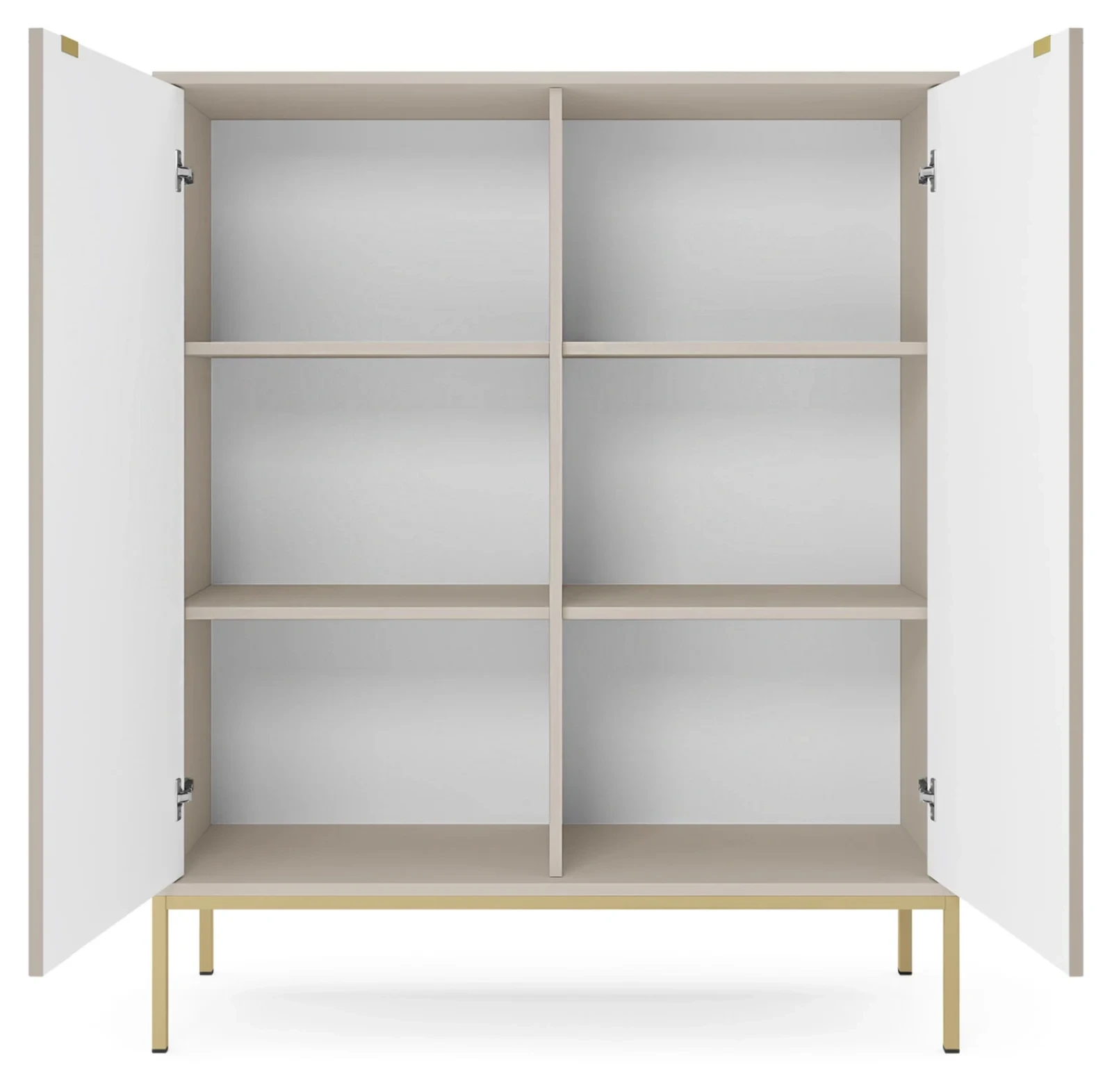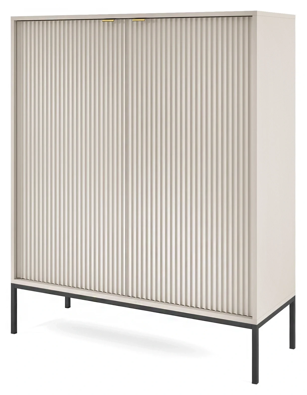 Nova to bardzo pojemna komoda w nowoczesnym stylu. Komoda została wyposażona w 4 półki (co daje aż 6 przestrzeni użytkowych), dzięki czemu stanowi idealne miejsce do przechowywania ubrań oraz pozostałych elementów garderoby, jak czapki, szale itp. Komoda sprawdzi się zarówno w salonie, sypialni, jak też pokoju przedpokoju, czy pokoju młodzieżowym. Nowoczesny, minimalistyczny design połączony z kaszmirowym kolorem sprawia, że komoda Nova prezentuje się niezwykle stylowo i nowocześnie. Prosta ale elegancka forma z dekoracyjnym ryflowaniem na frontach to must have dla miłośników nowoczesnego designu. Metalowa podstawa nadaje lekkości konstrukcji, a całości dopełniają ozdobne uchwyty w kolorze złotym. Mebel został zaprojektowany i wykonany w Polsce co jest gwarancją jakości - Wspieraj