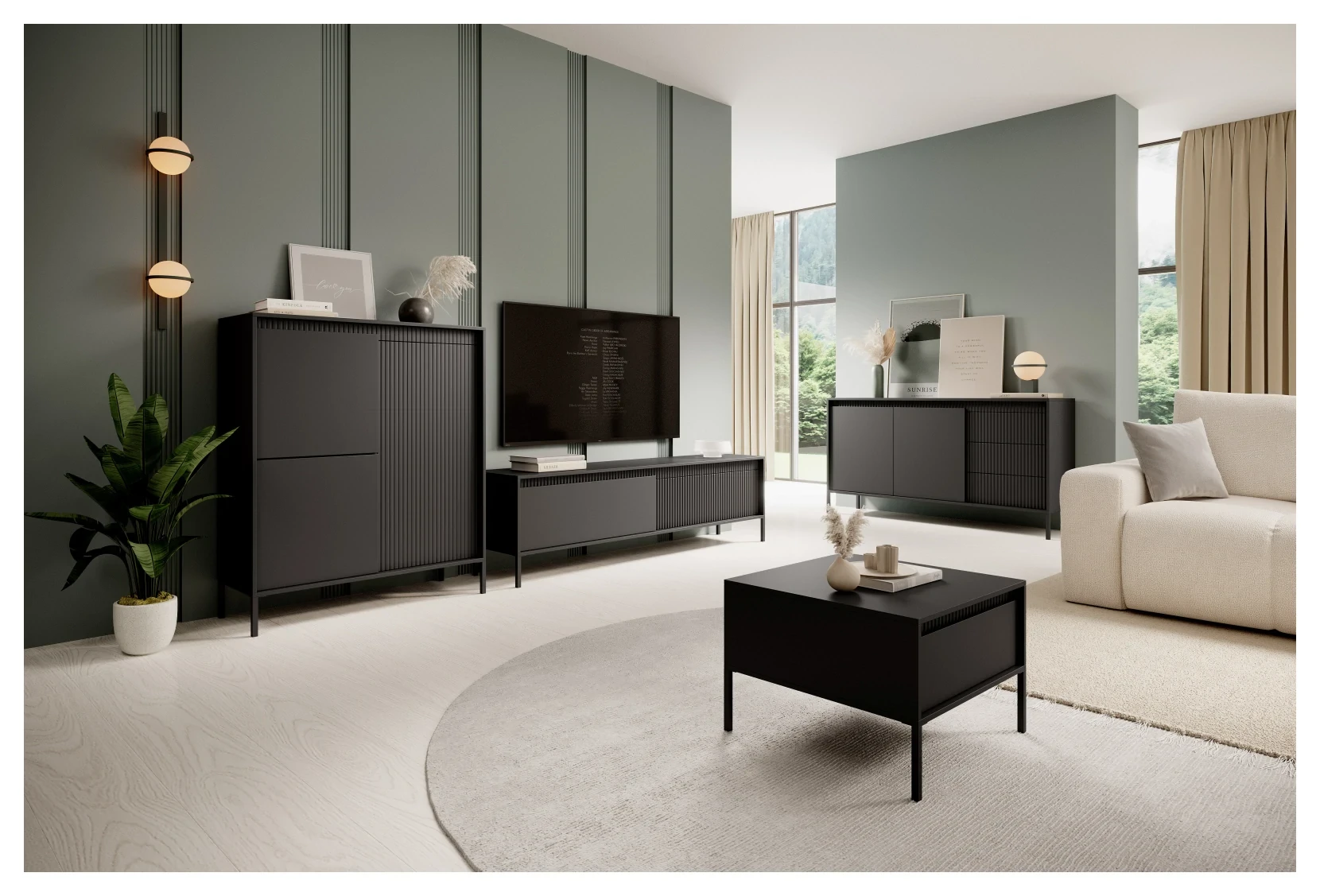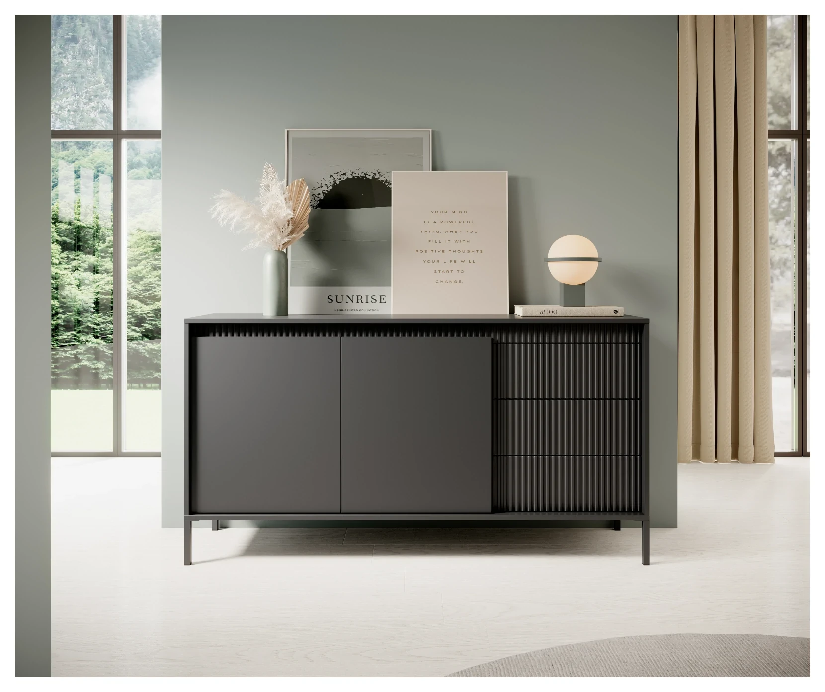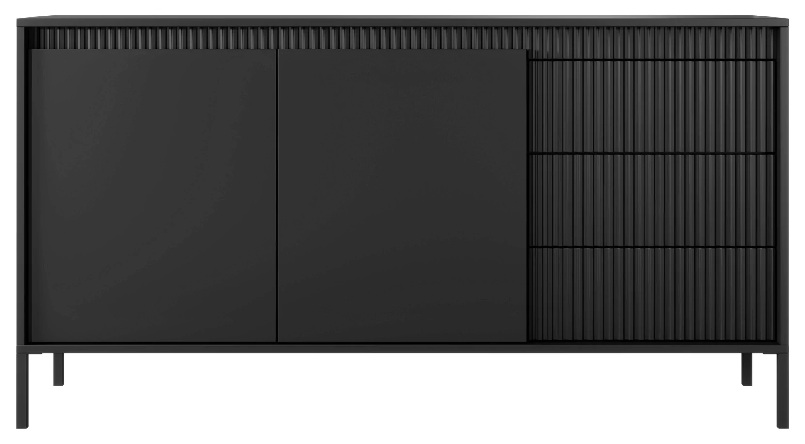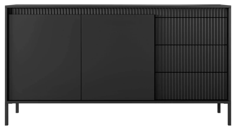 Komoda Senso 2-drzwiowa z 3 szufladami i ryflowanymi frontami 153 cm czarna