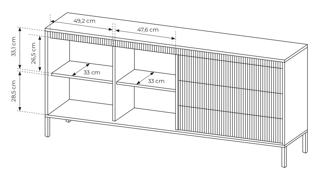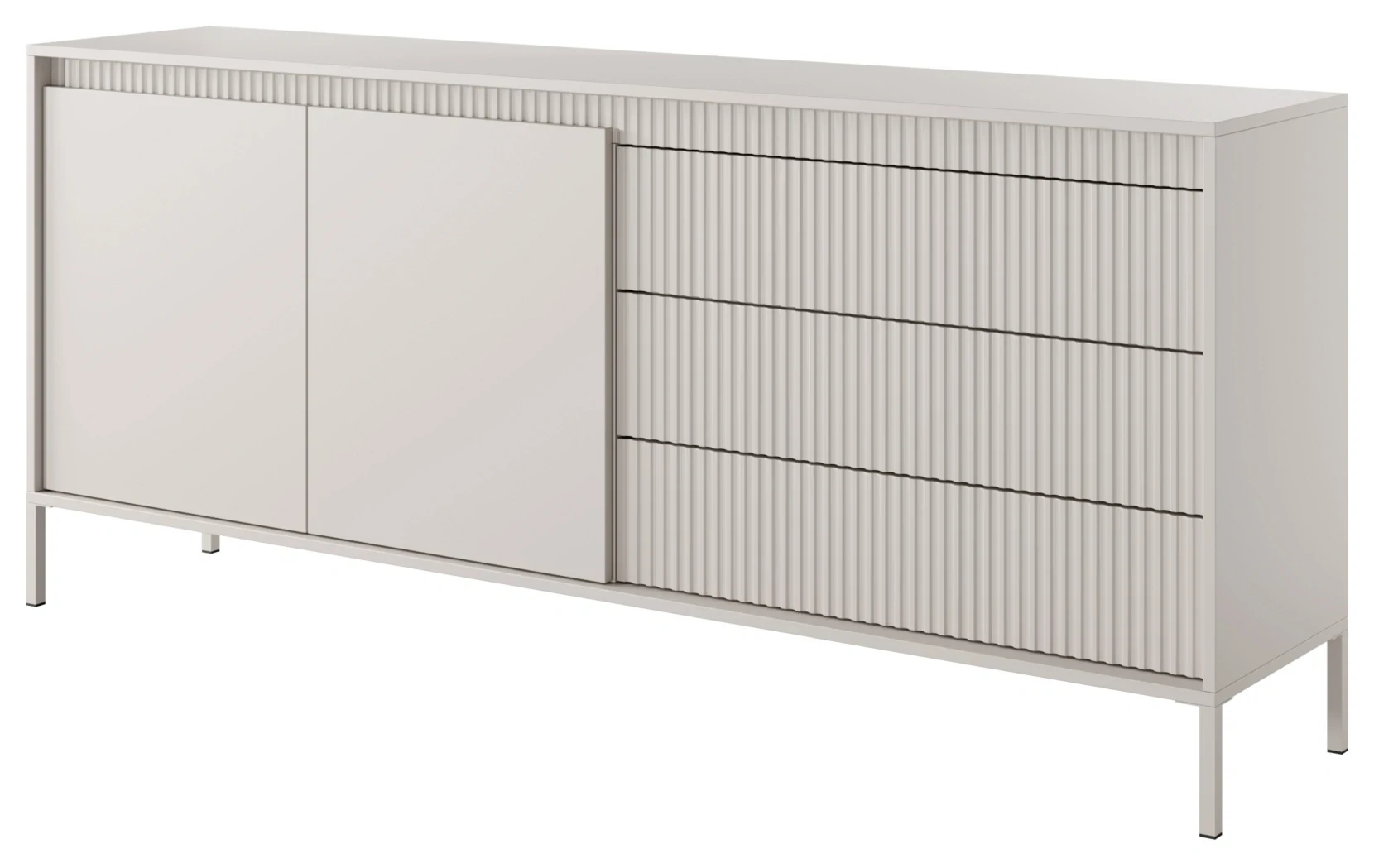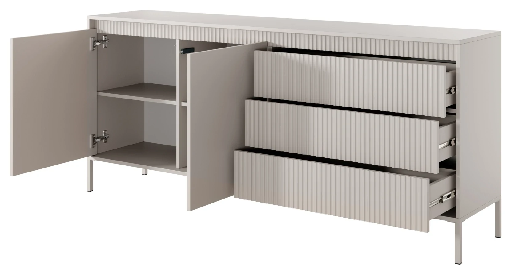Komoda Senso 2-drzwiowa z 3 szufladami i ryflowanymi frontami 187 cm beżowa